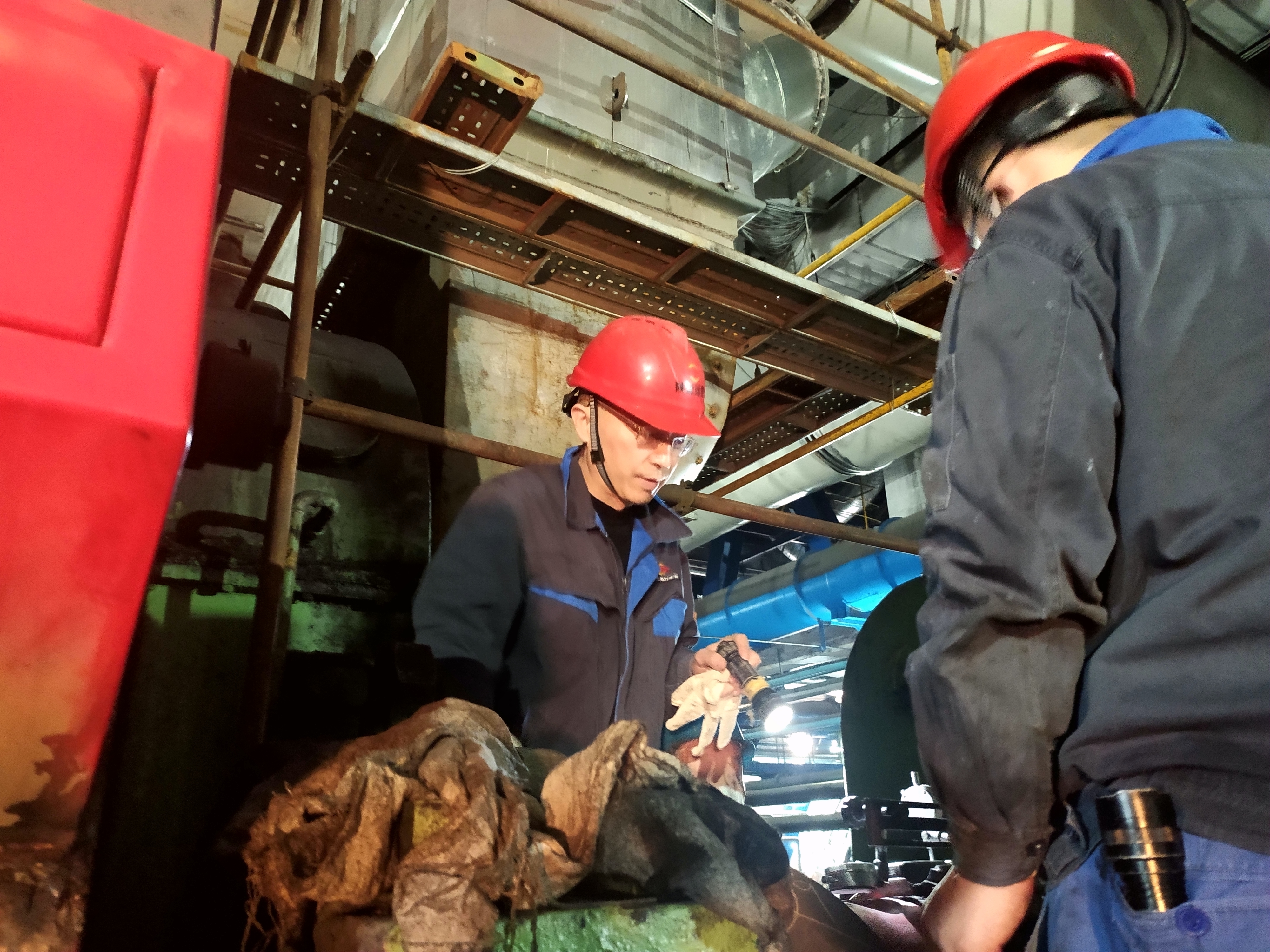 10:40,進了#5爐零米磨煤機檢修現(xiàn)場,劉宏二話不說,就上了操作平臺,或彎下身,或蹲在地上查看檢修情況,不時和工作人員交流著,又交代了幾句“抓緊工期,注意安全”后,劉宏從平臺上一躍下來,說:“走,12米?!?/span>