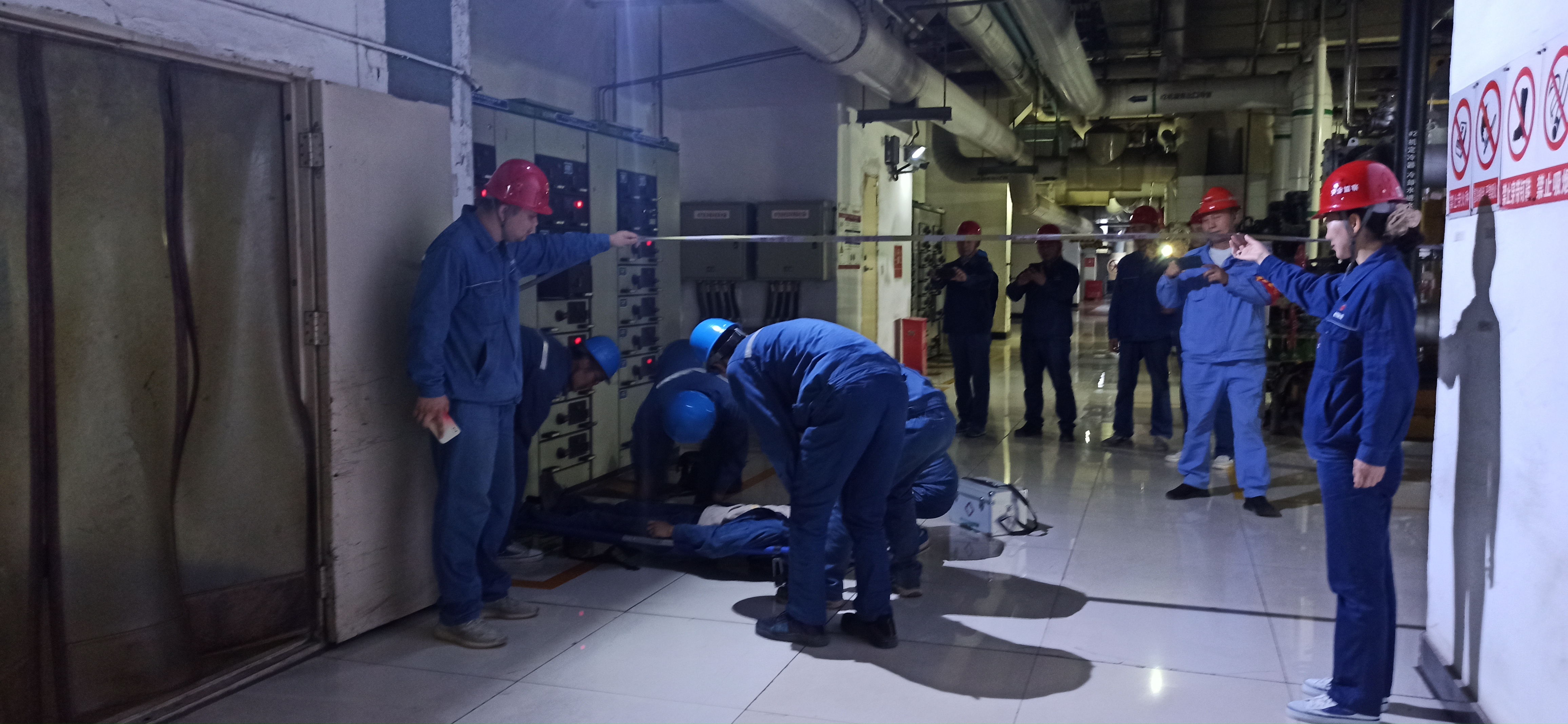 演練開(kāi)始,一名員工模擬觸電昏倒,現(xiàn)場(chǎng)工作人員發(fā)現(xiàn)后及時(shí)斷電,查看傷情,逐級(jí)上報(bào)。演練指揮中心隨即啟動(dòng)應(yīng)急預(yù)案,事故搶救組、警戒聯(lián)絡(luò)組、醫(yī)療救護(hù)組、后勤保障組立即行動(dòng),在最短時(shí)間內(nèi)完成拉警戒線(xiàn)、現(xiàn)場(chǎng)救護(hù)、送往醫(yī)院等工作。經(jīng)過(guò)半個(gè)小時(shí)的緊急救援,事故人員得到救治?,F(xiàn)場(chǎng)參演人員沉著冷靜,有條不紊,取得了較好的演練效果。