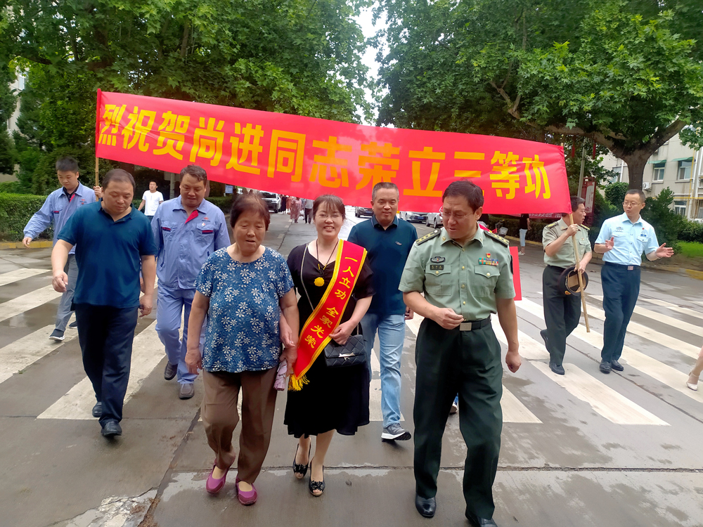 7月23日,咸陽市渭城區(qū)武裝部一行送來喜報,正陽鎮(zhèn)政府、公司渭河項目部等相關(guān)單位人員為尚照熙一家送去關(guān)懷與祝福,共同見證了這激動人心的一刻。當天上午,咸陽市渭城區(qū)武裝部一行上門為尚照熙夫婦戴上“一人立功,全家光榮”的鮮紅綬帶,并送上喜報和慰問金。