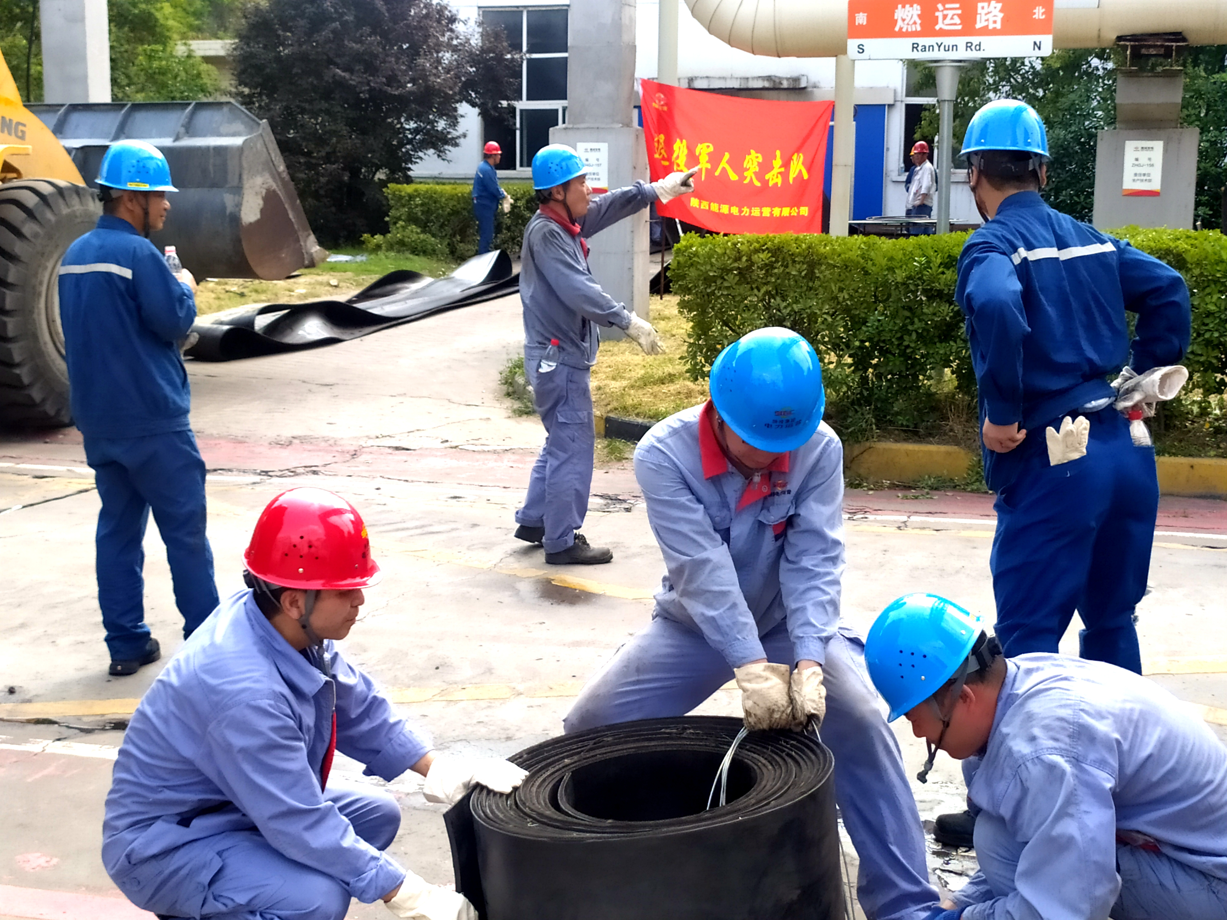 此次需要更換的皮帶寬1.2米,厚0.1米,重達(dá)7噸,任務(wù)之艱巨,工作量之大,為公司成立以來所未有。搶修現(xiàn)場,借助動力機(jī)械,工作人員從皮帶機(jī)的一邊先將皮帶一寸一寸、一尺一尺拉拽出來。這時,嚴(yán)陣以待的突擊隊員就沖上前各司其職,一組切割,一組搬運(yùn),一組捆扎。