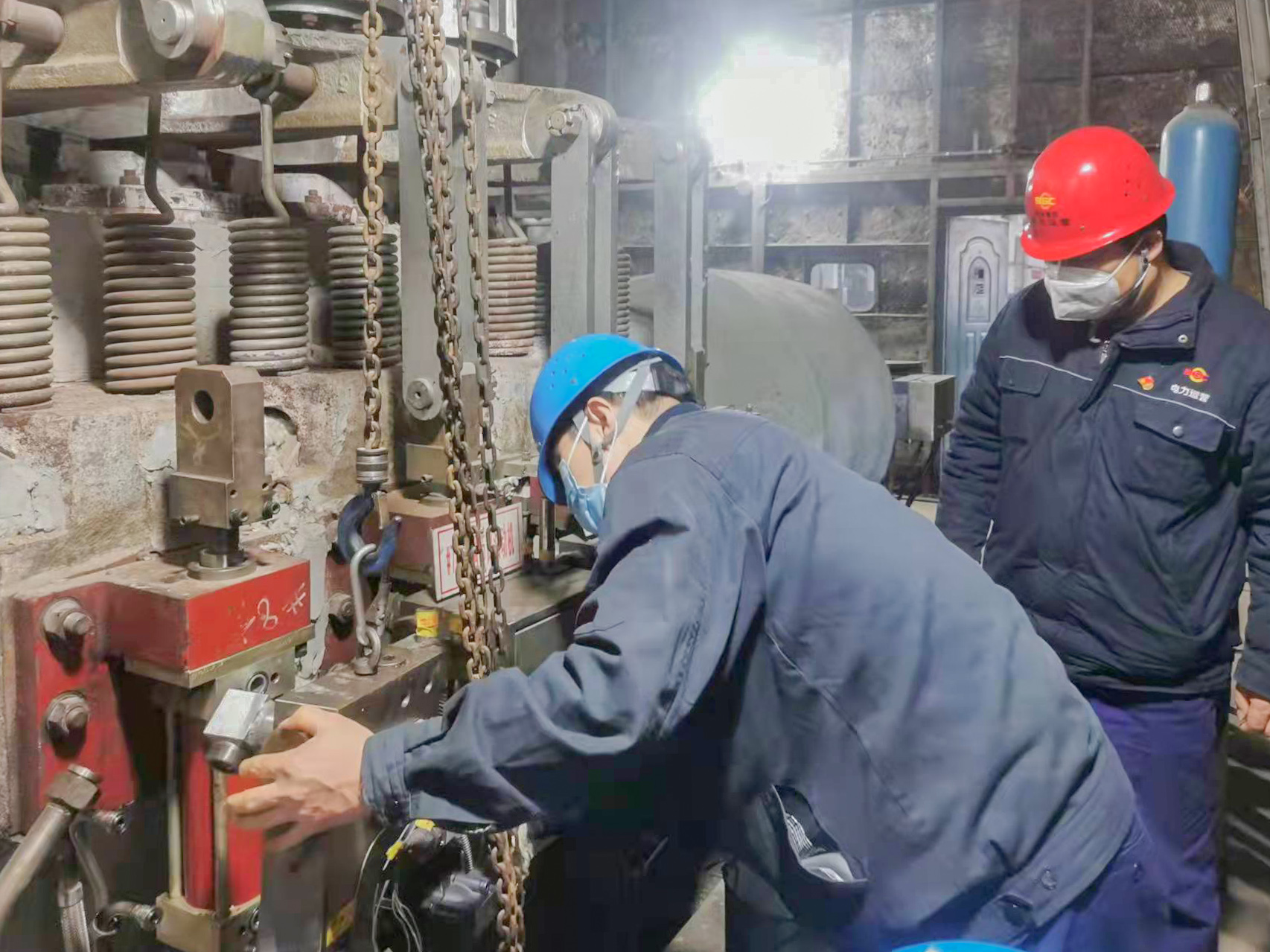 機(jī)務(wù)隊(duì)隊(duì)長王會勇就是眾多留守人員中的一個(gè)。疫情防控開始,他就一直吃住在生產(chǎn)現(xiàn)場。哪里有檢修任務(wù),哪里就有他的身影?!巴蹶?duì)長把生產(chǎn)現(xiàn)場當(dāng)成自己的家了!”是同事說他最多的話。他總是一笑,說:“設(shè)備就像我們的娃,只有我在現(xiàn)場,才安心?。 陛o機(jī)班58歲的老師傅敬新民家就在附近的楊家灣,他從疫情開始就一直留守生產(chǎn)現(xiàn)場,堅(jiān)決守好保電保熱“主戰(zhàn)場”。