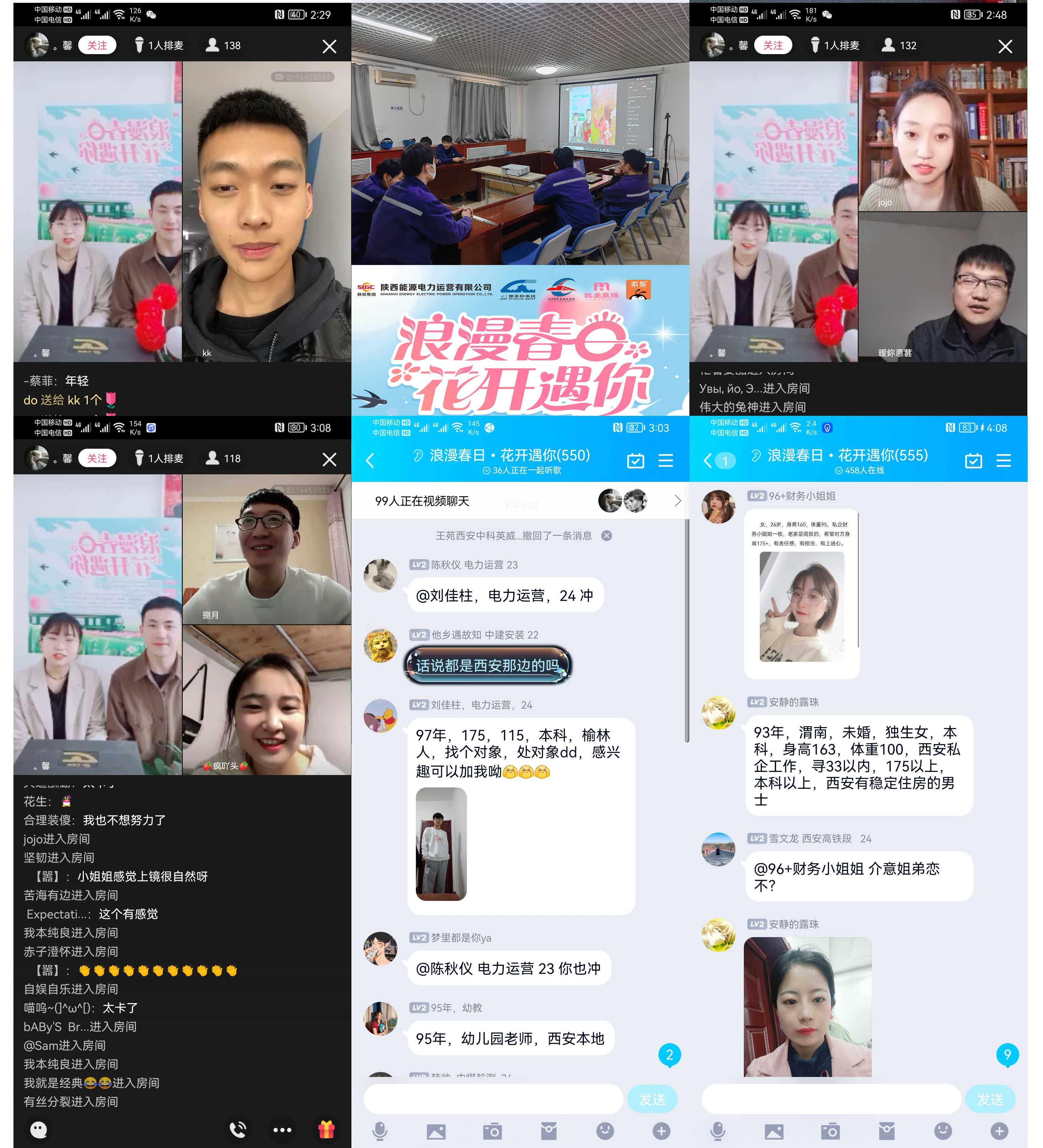 3月19日,電力運(yùn)營公司團(tuán)委聯(lián)合中鐵局西安動車段團(tuán)委和基礎(chǔ)設(shè)施段團(tuán)委開展了“浪漫春日·花開遇你”線上聯(lián)誼交友活動,幫助單身青年職工拓寬交友渠道,搭建良好交流平臺?;顒友埩岁兾魇】萍紡d、中科院光機(jī)所、集團(tuán)系統(tǒng)單位人民大廈、清水川能源等20余家企事業(yè)單位共550余名單身青年參加。