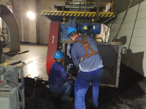 因受近期市場(chǎng)不利因素影響,煤炭質(zhì)量較差,導(dǎo)致除灰系統(tǒng)管道、閥門故障頻頻,鍋爐制粉系統(tǒng)缺陷接連不斷,設(shè)備搶修、維護(hù)工作量激增。6月22日晚上8點(diǎn),因煤質(zhì)原因?qū)е?4爐甲、乙給煤機(jī)及磨煤機(jī)入口管道煤粉堵塞達(dá)5米之長(zhǎng),嚴(yán)重威脅設(shè)備安全運(yùn)行,消除隱患迫在眉睫。面對(duì)嚴(yán)峻挑戰(zhàn),項(xiàng)目部快速響應(yīng),立即集結(jié)管理干部和班組支援人員趕赴現(xiàn)場(chǎng),和制粉班員工并肩作戰(zhàn)。