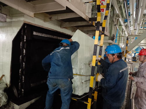 7月3日凌晨4點(diǎn),1#爐撈渣機(jī)由于煤質(zhì)原因和頻繁吹灰跳閘,項(xiàng)目部負(fù)責(zé)人帶領(lǐng)鍋爐班全體人員進(jìn)入現(xiàn)場清渣搶修,用鐵鍬奮力清除斜坡段余渣,緊握金屬管快速破碎焦渣。撈渣機(jī)位于爐膛底部,現(xiàn)場十分悶熱。雖然看不到汗珠滑落的場景,但大家的工作服全都濕透了,卻沒有人多說一句抱怨的話。