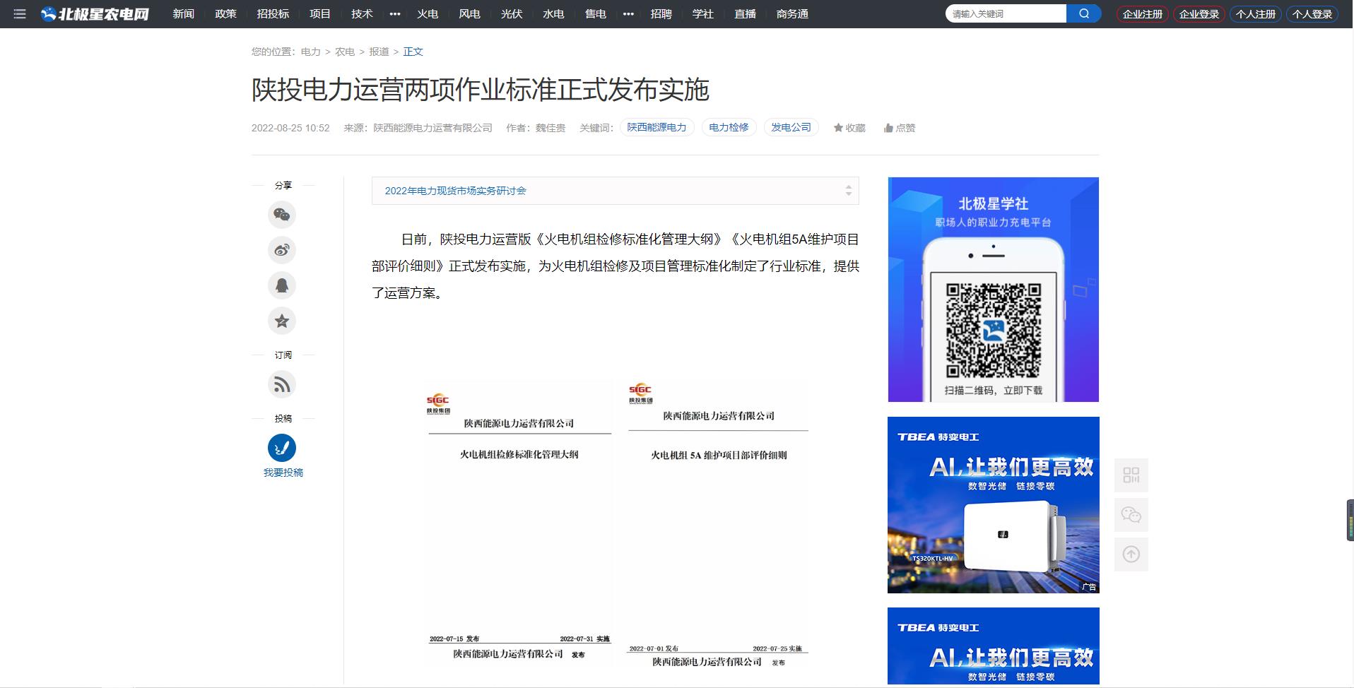 日前,陜投電力運(yùn)營版《火電機(jī)組檢修標(biāo)準(zhǔn)化管理大綱》《火電機(jī)組5A維護(hù)項(xiàng)目部評價細(xì)則》正式發(fā)布實(shí)施,為火電機(jī)組檢修及項(xiàng)目管理標(biāo)準(zhǔn)化制定了行業(yè)標(biāo)準(zhǔn),提供了運(yùn)營方案。