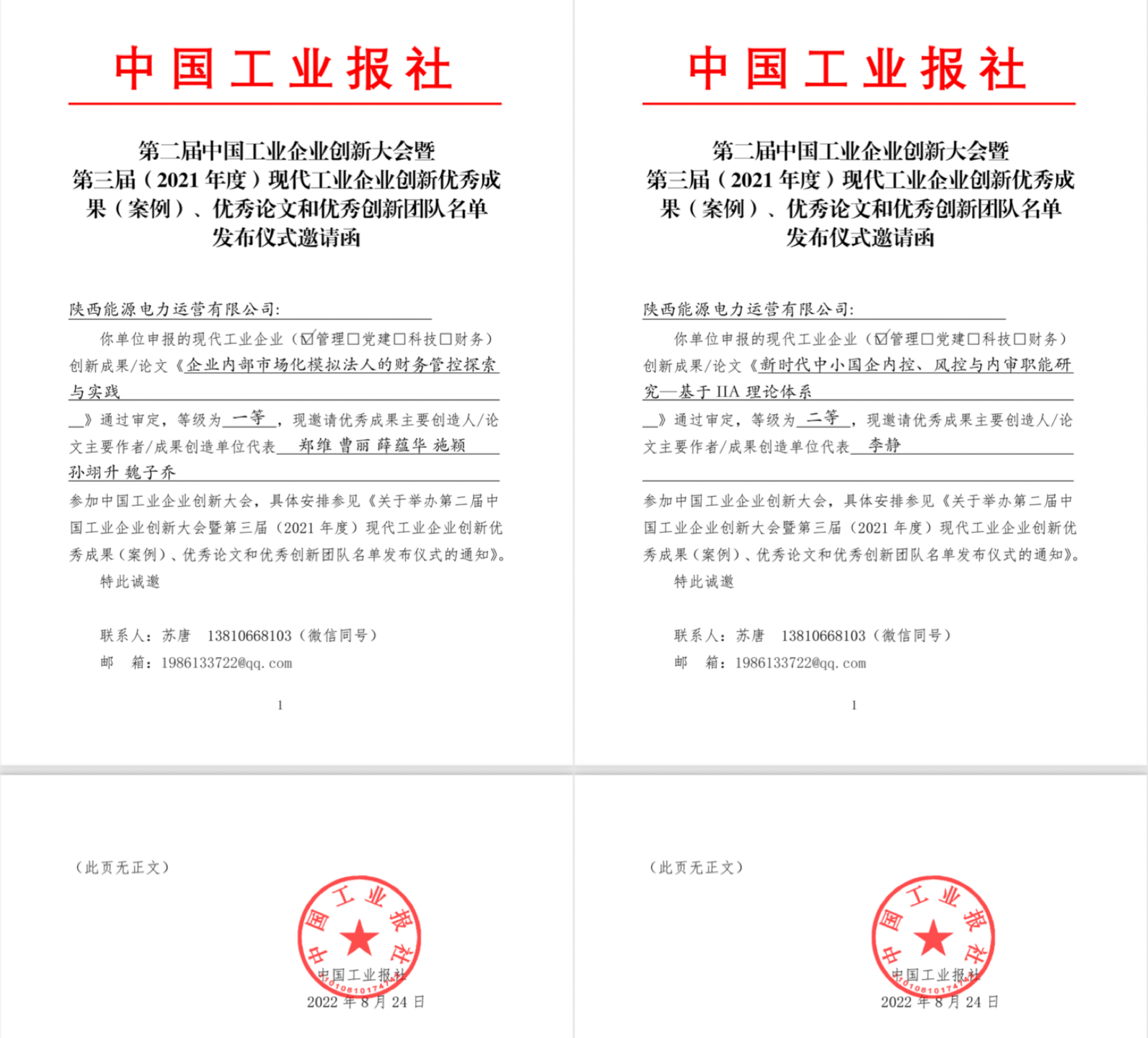 日前,公司《企業(yè)內(nèi)部市場化模擬法人的財(cái)務(wù)管控探索與實(shí)踐》《新時(shí)代中小國企內(nèi)控、內(nèi)控與內(nèi)審職能研究——基于IIA理論體系》兩篇學(xué)術(shù)論文分獲第二屆中國工業(yè)企業(yè)創(chuàng)新大會(huì)暨第三屆現(xiàn)代工業(yè)企業(yè)創(chuàng)新優(yōu)秀成果(案例)、優(yōu)秀論文和優(yōu)秀創(chuàng)新團(tuán)隊(duì)評(píng)比一等獎(jiǎng)、二等獎(jiǎng)。