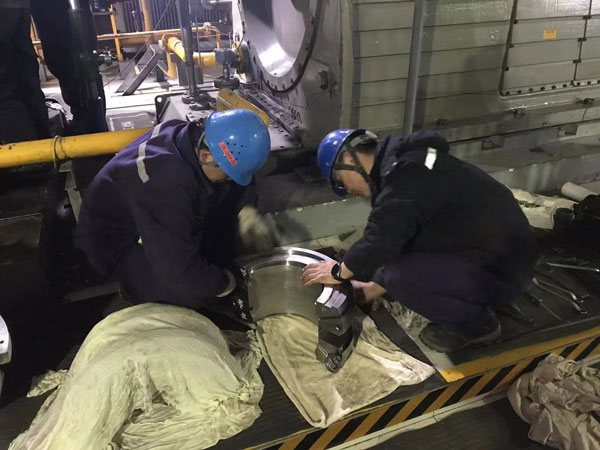 1月25日,農歷大年初五,渭河發(fā)電#4爐煙道蒸汽長吹灰器L2在運行中故障,嚴重影響機組安全運行。情況緊急,渭河項目部立即檢查分析,判斷故障原因為吹灰器頻繁過載而發(fā)生卡死,若不及時抽出卡塞的吹灰器,將在2—3時內被燒變形,整個吹灰器也將徹底損壞,要想盡快抽出吹灰器桿,全體人員只有徒手盤出吹灰器桿桿。42米高的鍋爐平臺上,即使戴著手套,也還是感到陣陣徹骨寒意,鍋爐班值班人員兩人一組,輪番上陣,一組換下來,手指都凍得僵硬。經過連續(xù)3個小時戰(zhàn)斗,順利完成了搶修任務。