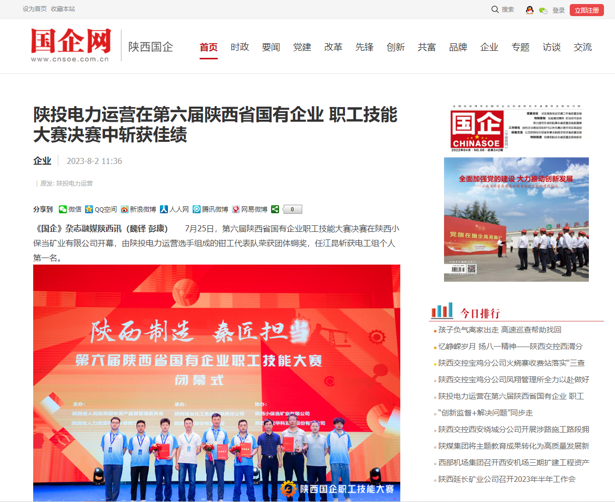 7月25日,第六屆陜西省國(guó)有企業(yè)職工技能大賽決賽在陜西小保當(dāng)?shù)V業(yè)有限公司開(kāi)幕,公司選手組成的陜投集團(tuán)代表隊(duì)榮獲鉗工組團(tuán)體銅獎(jiǎng),任江昆斬獲電工組個(gè)人第一名。