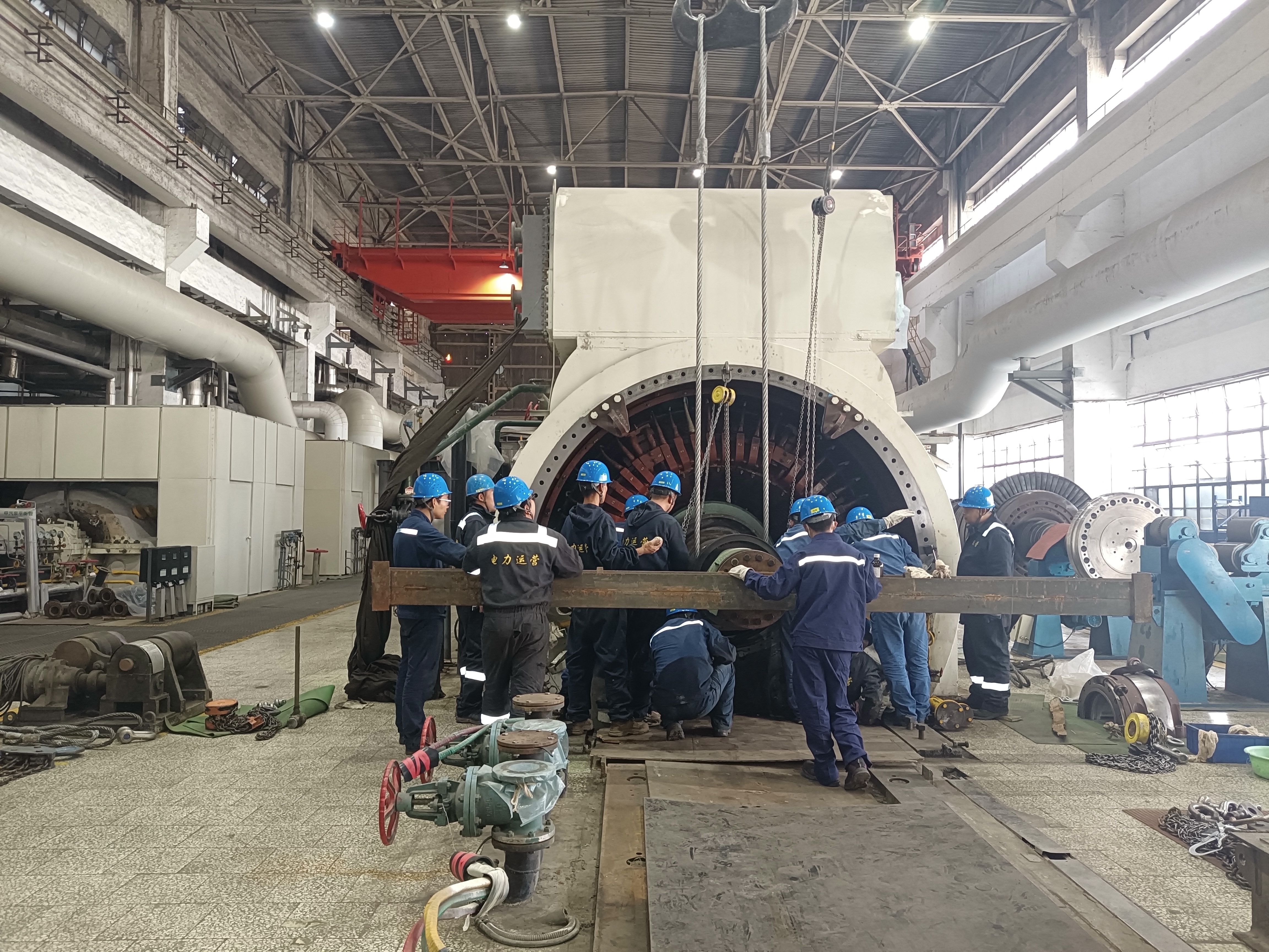 10月23日14:00,渭河發(fā)電#6機發(fā)電機轉(zhuǎn)子順利回穿,標(biāo)志著渭河項目部A級檢修取得了階段性勝利。檢修現(xiàn)場,各專業(yè)工作緊張進行,合奏出一曲動聽的等級檢修“交響樂章”。