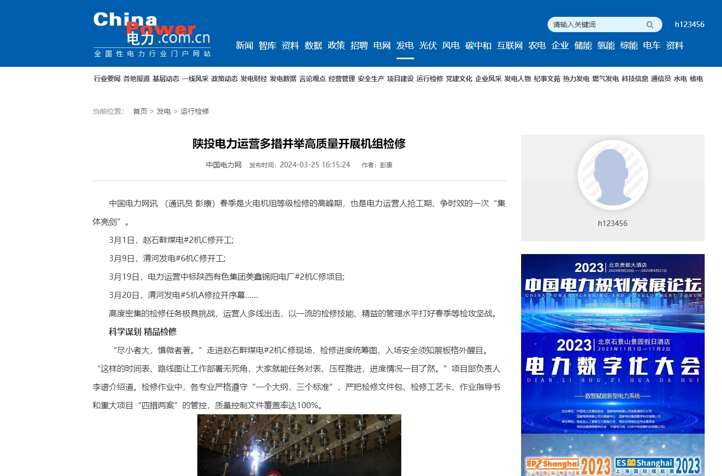 3月19日,電力運(yùn)營(yíng)中標(biāo)陜西有色集團(tuán)美鑫錦陽(yáng)電廠#2機(jī)C修項(xiàng)目;