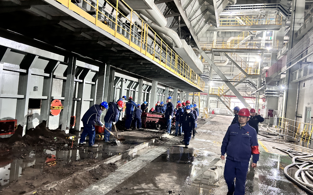 富縣項(xiàng)目部立即組織人員奔赴現(xiàn)場(chǎng),排查原因,檢查發(fā)現(xiàn)撈渣機(jī)右側(cè)齒輪箱發(fā)生故障。為確保機(jī)組滿負(fù)荷出力,項(xiàng)目部緊急組織人員連續(xù)排渣,制定消防水遠(yuǎn)程沖渣、降溫后集中清理方案,人員分班連續(xù)作業(yè),經(jīng)過(guò)連續(xù)60個(gè)小時(shí)的全力奮戰(zhàn),共清理事故放渣500余噸,有效緩解了渣井壓力,為更換備品備件爭(zhēng)取了寶貴時(shí)間。
