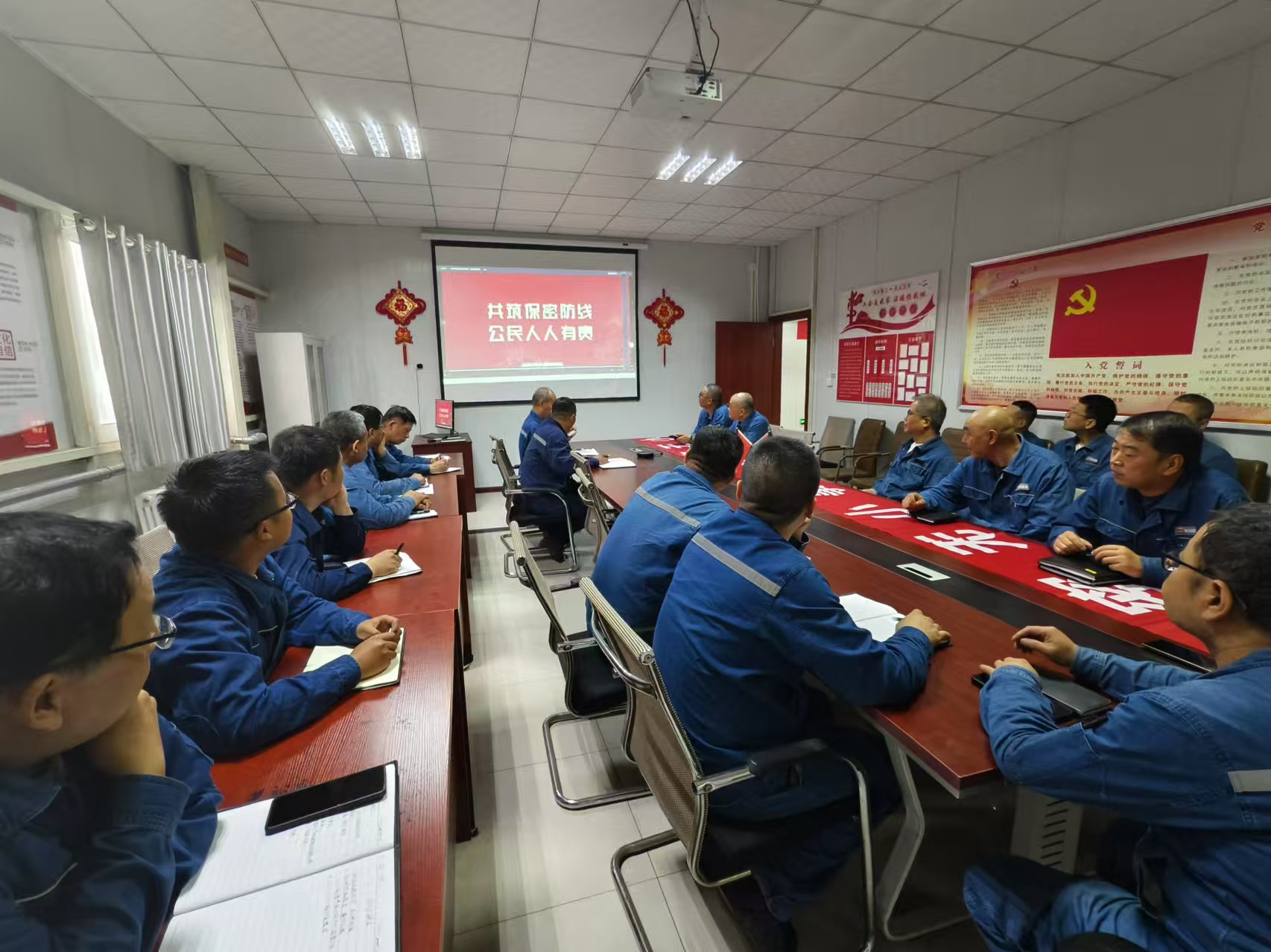 公司制發(fā)《關(guān)于印發(fā)第37個保密宣傳月活動方案的通知》,以“共筑保密防線,公民人人有責(zé)”為主題,明確了三個方面9項具體任務(wù),將保密教育納入理論學(xué)習(xí)“必修課”,依托黨委理論學(xué)習(xí)中心組學(xué)習(xí)會議,深入開展保密知識專題課,學(xué)習(xí)習(xí)近平總書記關(guān)于國家安全和保密工作的重要指示批示精神和《保密法》等重要內(nèi)容。督促子公司、項目部、事業(yè)部利用班組會等形式,集中學(xué)習(xí)保密法規(guī)、觀看警示教育片26場次,剖析失泄密典型事件,引導(dǎo)干部職工深刻認(rèn)識“保密工作無小事”,持續(xù)提升全員保守國家秘密的思想和行動自覺。