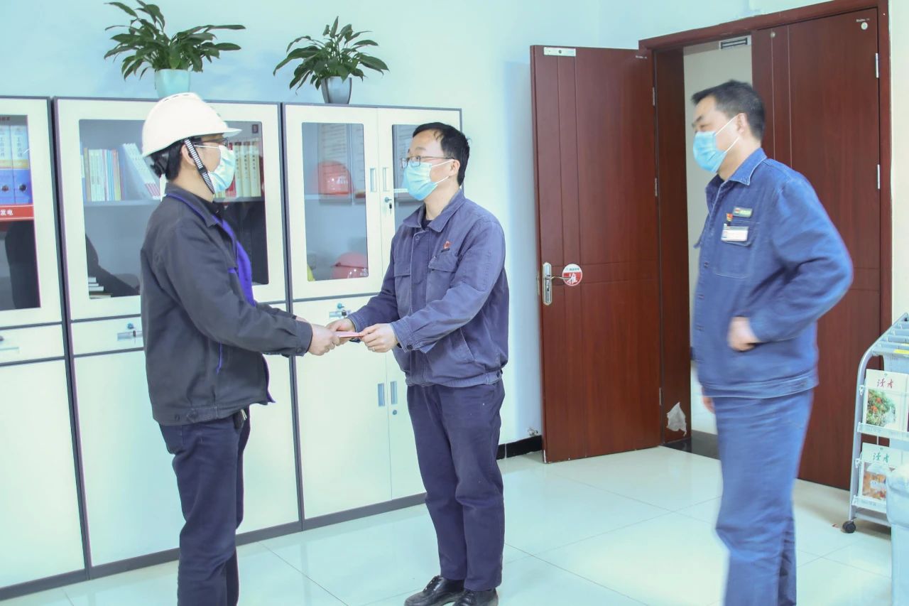 4月21日,商洛項目部領導前往商洛發(fā)電設備部,親手將2900元愛心捐款交到田超同志手中。