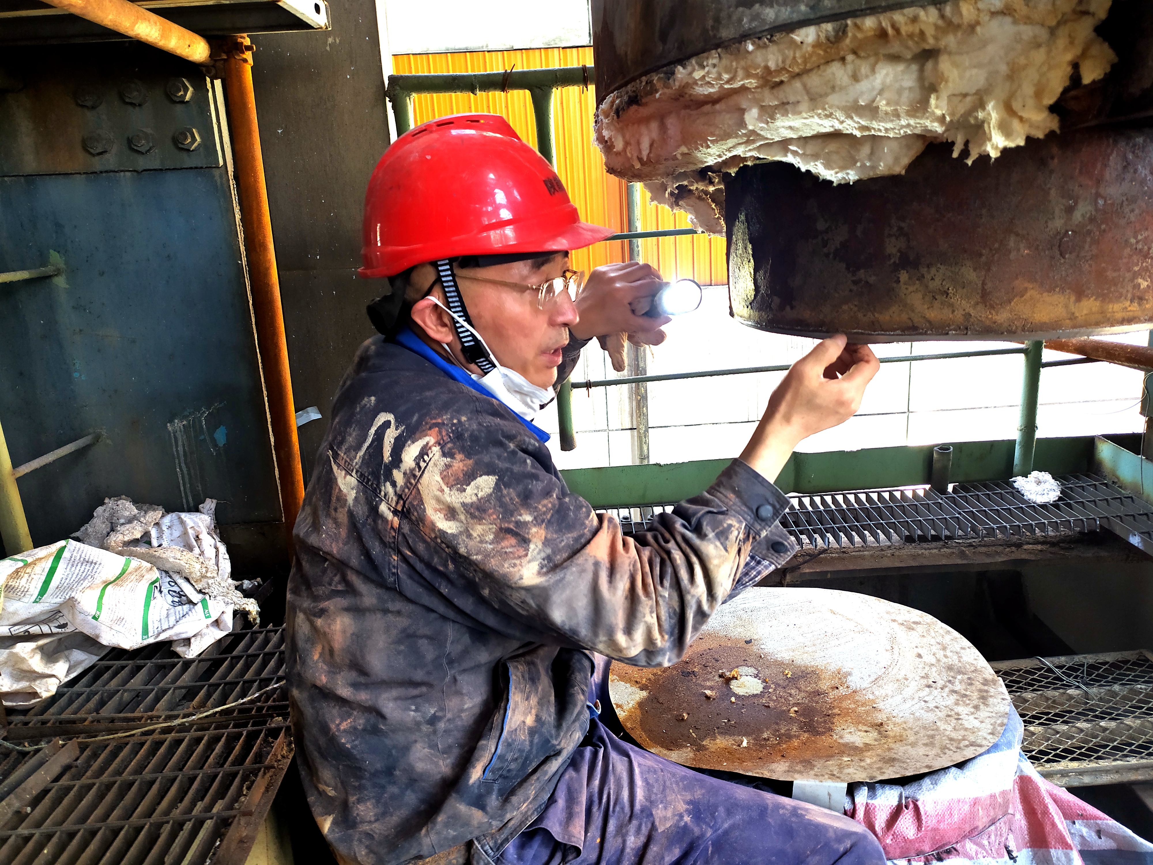 10:40,進了#5爐零米磨煤機檢修現(xiàn)場,劉宏二話不說,就上了操作平臺,或彎下身,或蹲在地上查看檢修情況,不時和工作人員交流著,又交代了幾句“抓緊工期,注意安全”后,劉宏從平臺上一躍下來,說:“走,12米?!?/span>