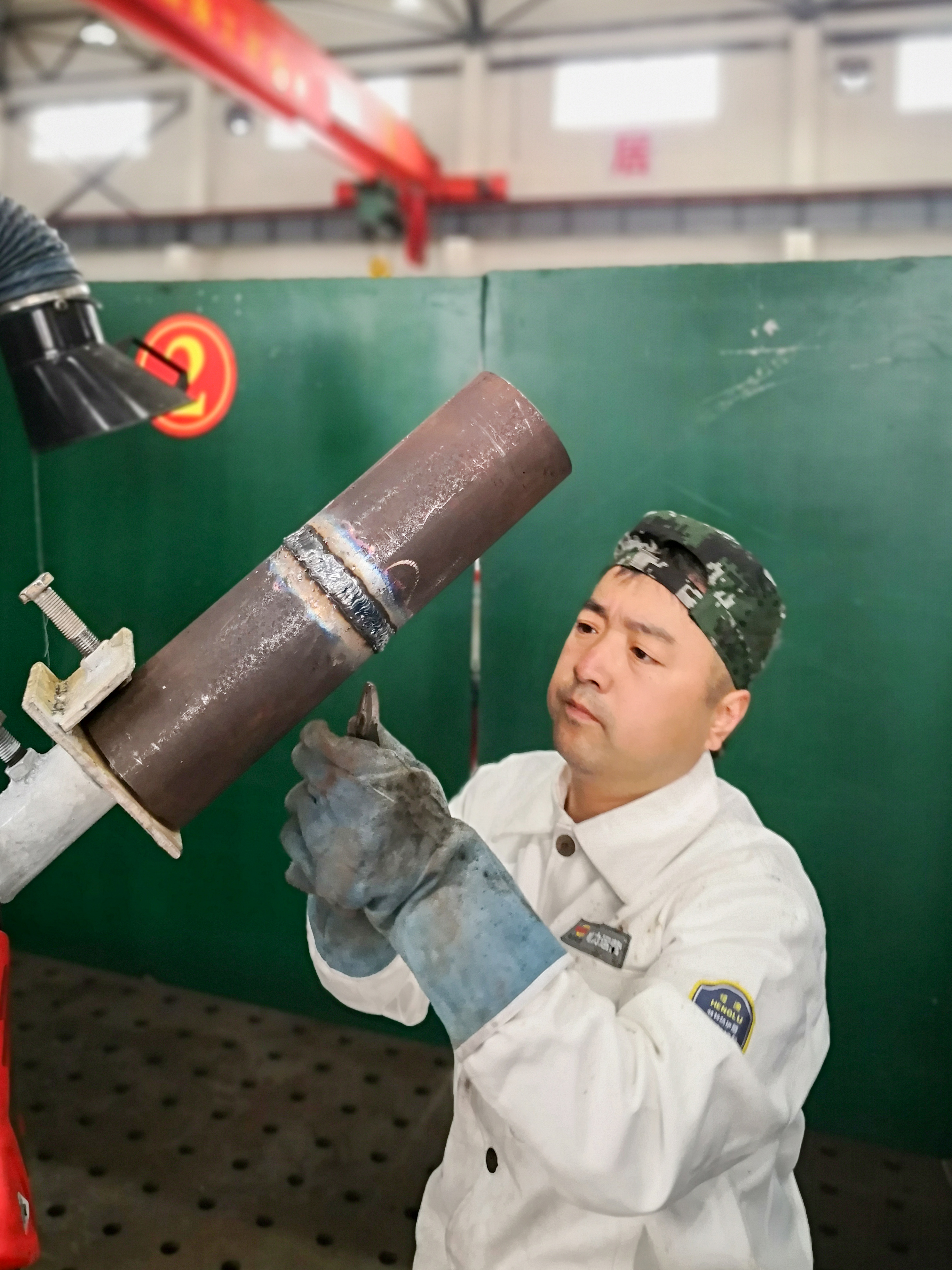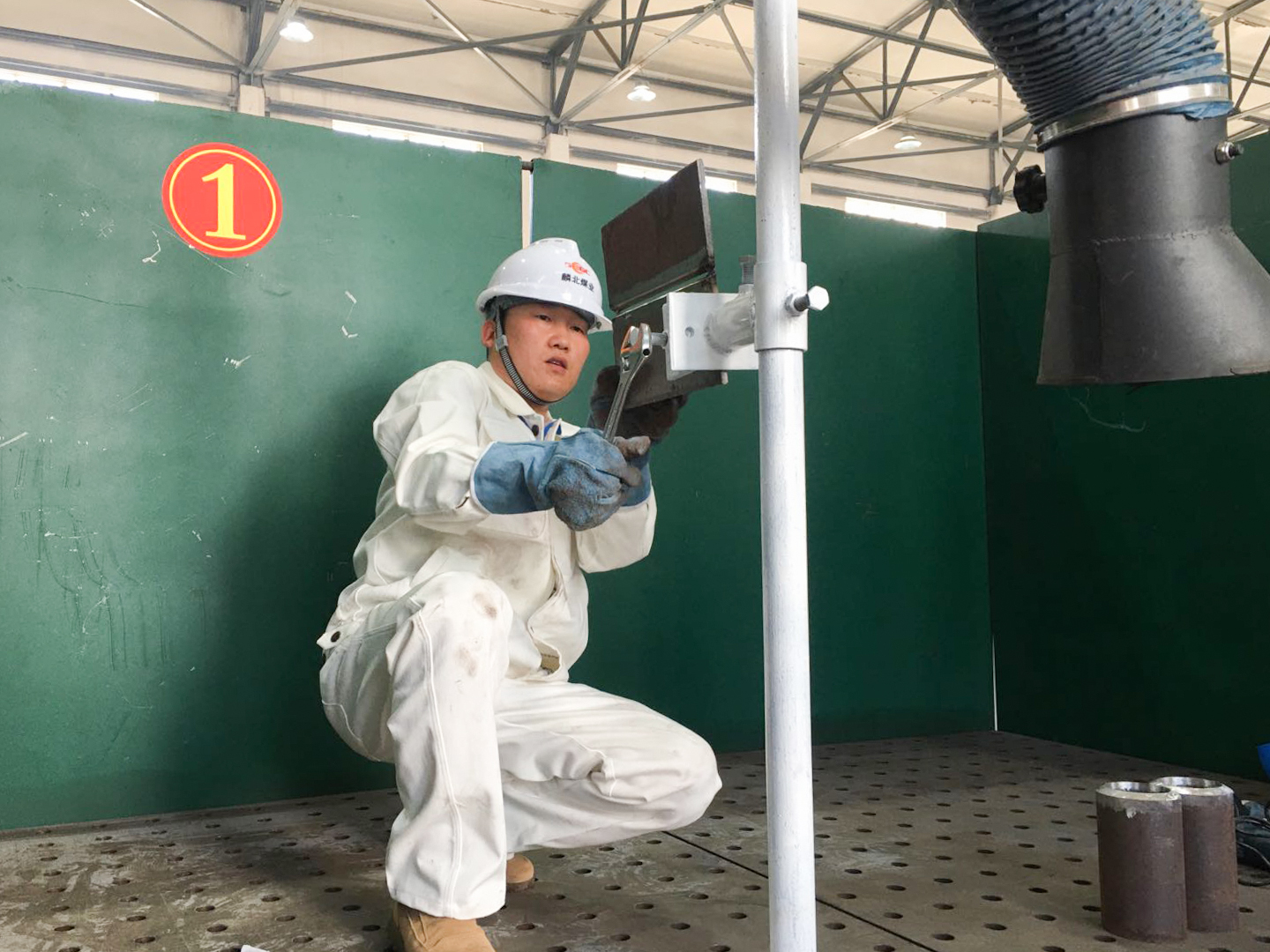 實(shí)操比賽現(xiàn)場(chǎng)焊花飛舞,弧光閃爍,選手們聚精會(huì)神、沉著應(yīng)戰(zhàn),嚴(yán)格按照操作規(guī)程和比賽規(guī)則完成每一道工序,展示出扎實(shí)的功底和精湛的技藝。電氣焊氬弧焊綜合應(yīng)用實(shí)操比賽項(xiàng)目中的板材對(duì)接仰焊,是焊接技術(shù)難度最大的項(xiàng)目,要求持續(xù)仰頭操作,單面焊接雙面成型,對(duì)每一位參賽選手的基本功和體力都是嚴(yán)峻的考驗(yàn)。