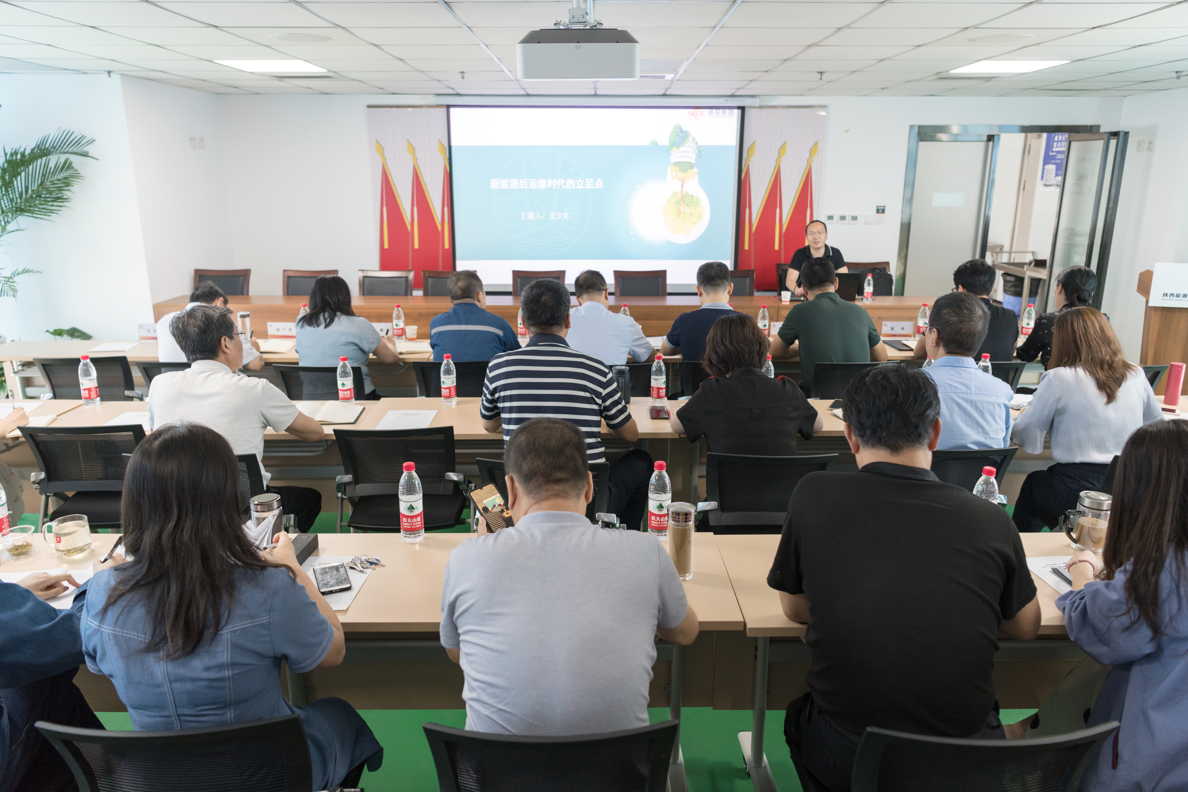 會(huì)上,中車(chē)新能源事業(yè)部負(fù)責(zé)人王少文老師介紹了我國(guó)和我省新能源產(chǎn)業(yè)的發(fā)展前景,尤其對(duì)風(fēng)電、光伏領(lǐng)域的發(fā)展前景進(jìn)行了整體分析;原華能陜西新能源公司檢修部主任肖桂霞老師結(jié)合新能源電站運(yùn)行、維護(hù)、檢修的工作內(nèi)容,對(duì)操作方法、規(guī)范進(jìn)行了普及;西安工程大學(xué)耿慶博士結(jié)合現(xiàn)狀,從風(fēng)光火儲(chǔ),源網(wǎng)荷儲(chǔ)等方向進(jìn)行了講解,對(duì)發(fā)展新能源業(yè)務(wù)的可行路徑進(jìn)行了深入探討和分析。