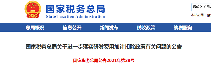為貫徹落實(shí)國(guó)務(wù)院激勵(lì)企業(yè)加大研發(fā)投入、優(yōu)化研發(fā)費(fèi)用加計(jì)扣除政策實(shí)施的舉措,讓納稅人充分享受政策紅利,激勵(lì)企業(yè)增加研發(fā)投入積極性,方便企業(yè)提前享受研發(fā)費(fèi)用加計(jì)扣除優(yōu)惠政策,國(guó)家稅務(wù)總局制發(fā)《關(guān)于進(jìn)一步落實(shí)研發(fā)費(fèi)用加計(jì)扣除政策有關(guān)問(wèn)題的公告》(2021年第28號(hào),以下簡(jiǎn)稱(chēng)《公告》)