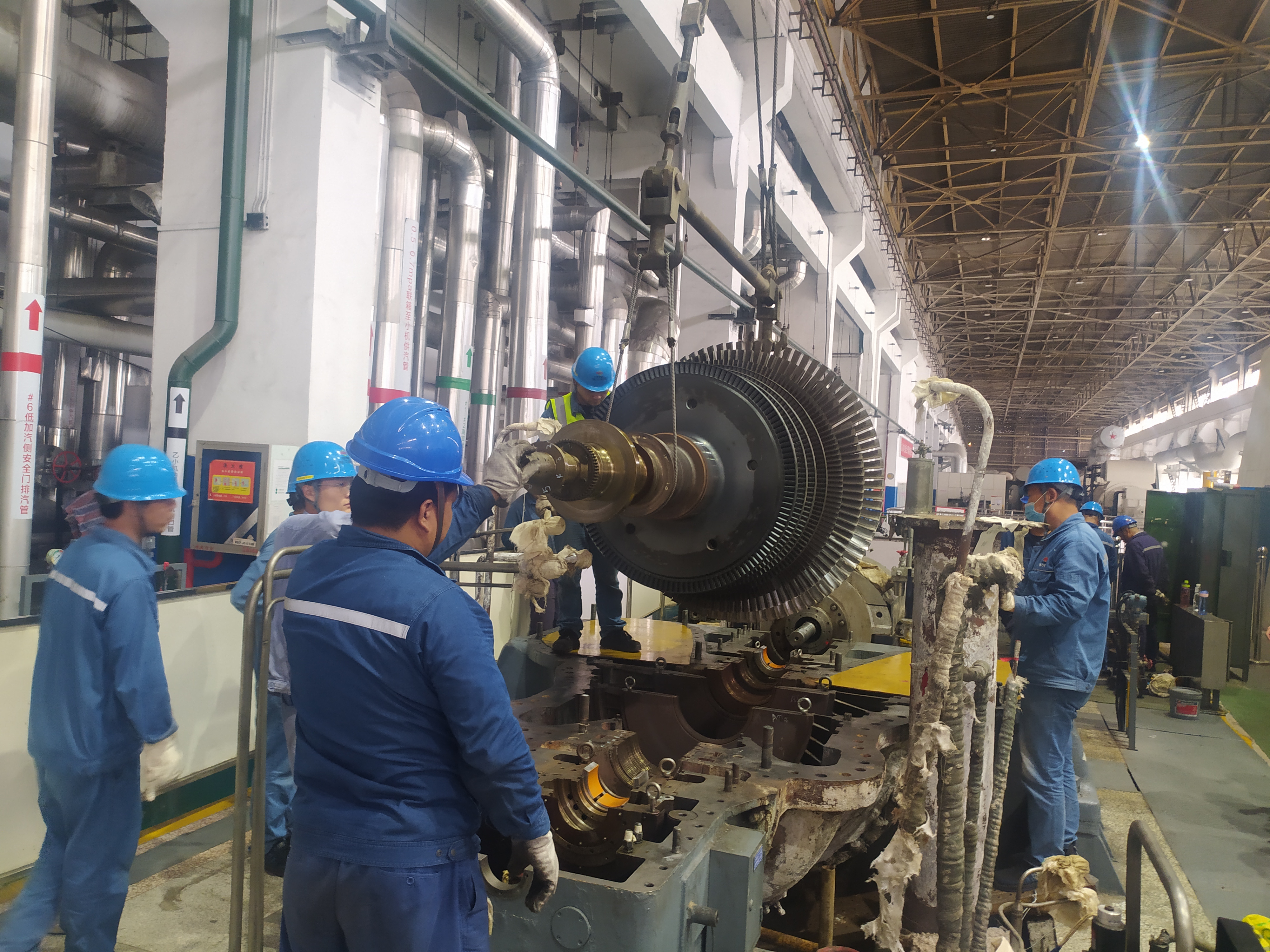 在#5、#6機高背壓轉(zhuǎn)子更換過程中,渭河項目部廣大團員青年主動作為、勇于擔當,成立了一支由汽機主機班陳濤、王澤朋、鄧英杰、陳湘,及趙石畔項目部支援人員喻博聞、晏源等6名青工組成的“高背壓轉(zhuǎn)子更換青年突擊隊”,積極承擔了此次工作的夜間突擊任務。等級檢修開始以來,這支突擊隊日夜奔忙在檢修現(xiàn)場,始終奮戰(zhàn)在陣地最前沿,為打贏此次“保電保熱”攻堅戰(zhàn)奉獻了青春力量。