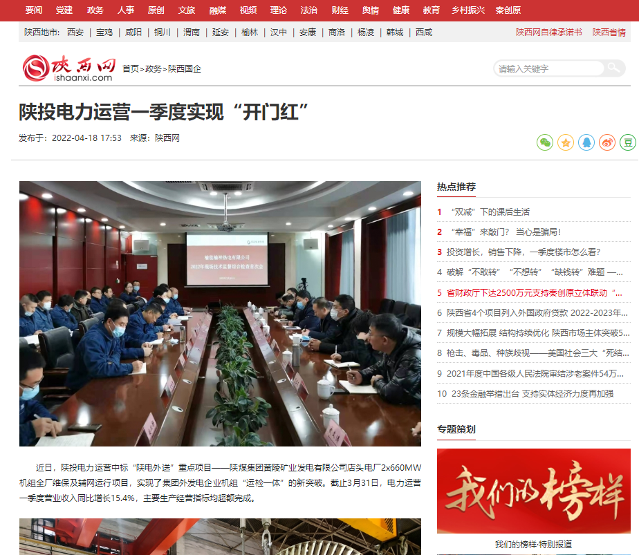 近日,陜投電力運(yùn)營(yíng)中標(biāo)“陜電外送”重點(diǎn)項(xiàng)目——陜煤集團(tuán)黃陵礦業(yè)發(fā)電有限公司店頭電廠2x660MW機(jī)組全廠維保及輔網(wǎng)運(yùn)行項(xiàng)目,實(shí)現(xiàn)了集團(tuán)外發(fā)電企業(yè)機(jī)組“運(yùn)檢一體”的新突破。截止3月31日,電力運(yùn)營(yíng)一季度營(yíng)業(yè)收入同比增長(zhǎng)15.4%,主要生產(chǎn)經(jīng)營(yíng)指標(biāo)均超額完成。