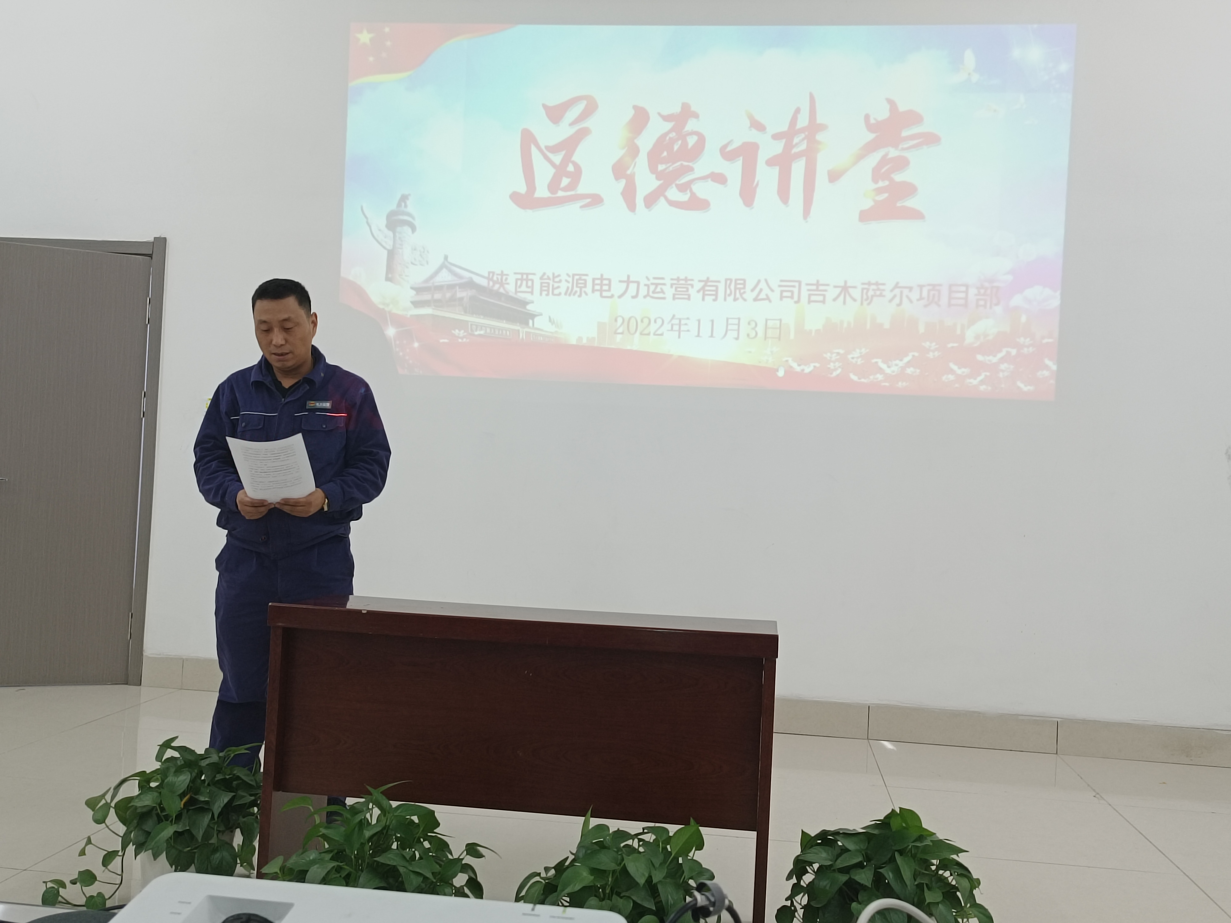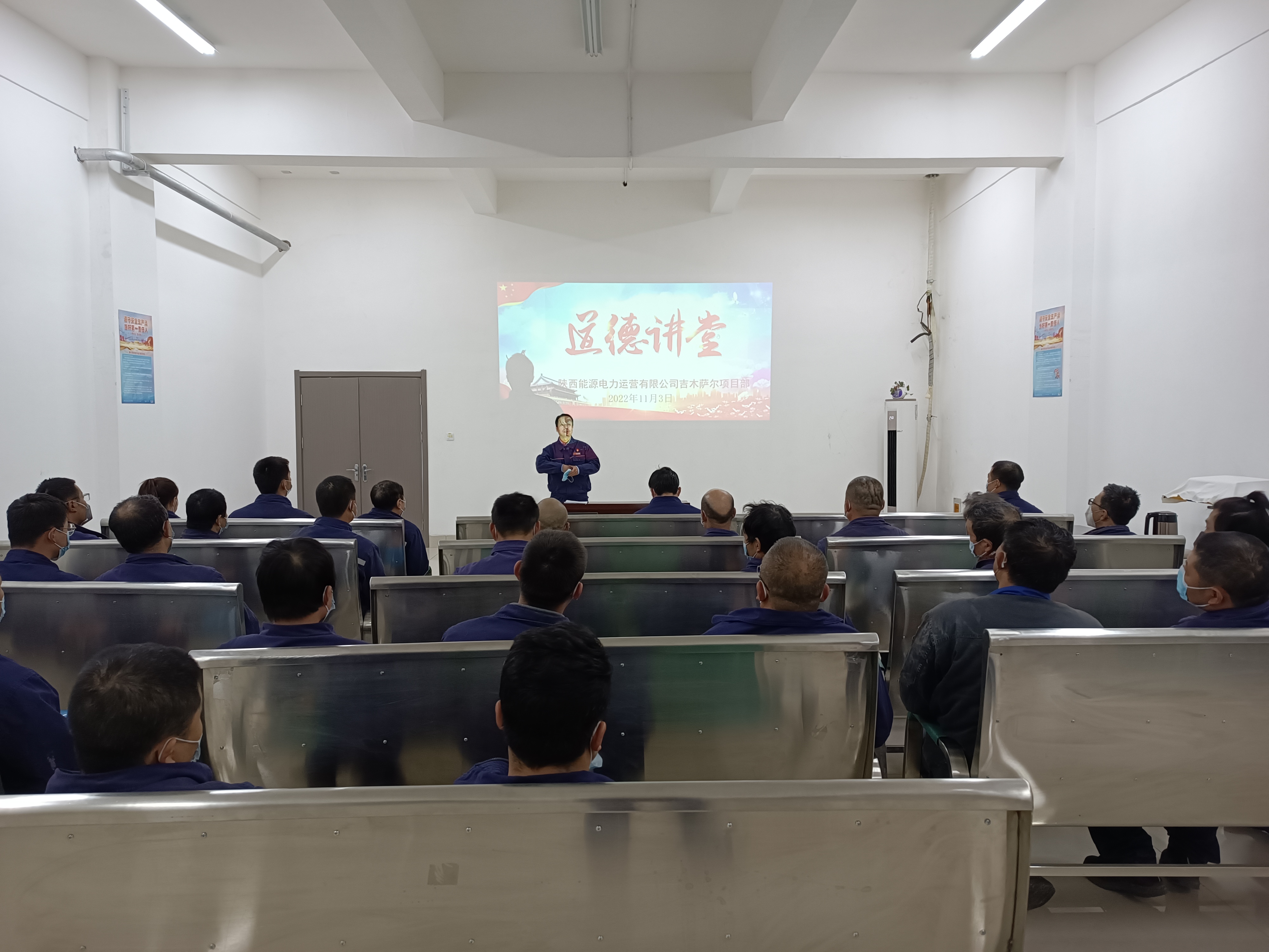 11月3日,吉木薩爾項目部開展了“敬業(yè)奉獻”主題道德講堂活動。本次道德講堂共分為自我反省、同唱經(jīng)典、觀看視頻、論語賞析、模范宣講和總結點評六個環(huán)節(jié)。