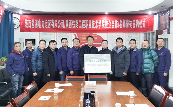 簽約儀式上,公司工會主席韓宏友與陜鐵院鐵道裝備制造學(xué)院國家級焊接技能大師叱培洲代表校企雙方簽訂了戰(zhàn)略合作協(xié)議,同時舉行“鐵道裝備制造學(xué)院——陜西能源電力運營有限公司教學(xué)實踐基地”授牌儀式。公司5名優(yōu)秀技能人才分別與叱培洲老師、省級鉗工技能大師鄭永濤簽訂“名師帶徒”協(xié)議,師徒代表分別做了表態(tài)發(fā)言。