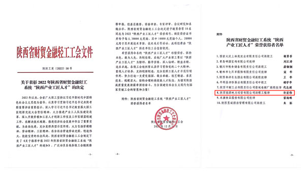 “陜西產(chǎn)業(yè)工匠人才”評選旨在弘揚(yáng)勞模精神、勞動(dòng)精神、工匠精神,表彰優(yōu)秀工匠人才。2022年,共有10名同志被陜西省財(cái)貿(mào)金融輕工工會(huì)授予“陜西產(chǎn)業(yè)工匠人才”稱號,頒發(fā)榮譽(yù)證書并給予每人30000元獎(jiǎng)勵(lì),其中10000元獎(jiǎng)勵(lì)個(gè)人,20000元用于其開展技術(shù)革新、技術(shù)攻關(guān)等活動(dòng)。