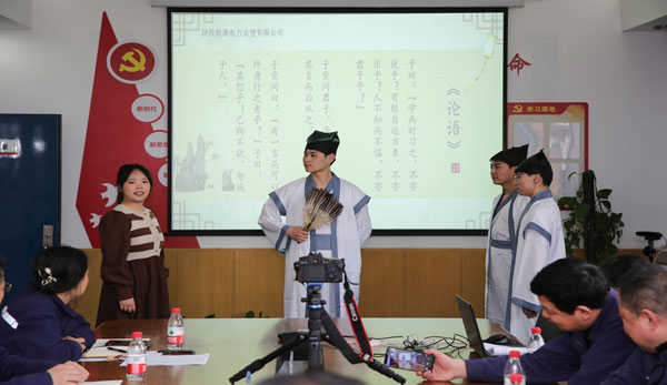 活動現(xiàn)場,與會人員回顧了自己工作以來的歷程,做了一次自我反省。在項目部自制MV引領(lǐng)下,參會人員齊唱歌曲《公民道德歌》,觀看道德模范事跡視頻,并通過青年員工自導(dǎo)自演的古今穿越情景劇演繹《論語》經(jīng)典、講述“陜投好人”邢進故事等環(huán)節(jié),引導(dǎo)干部職工提高思想道德、職業(yè)道德和家庭美德。