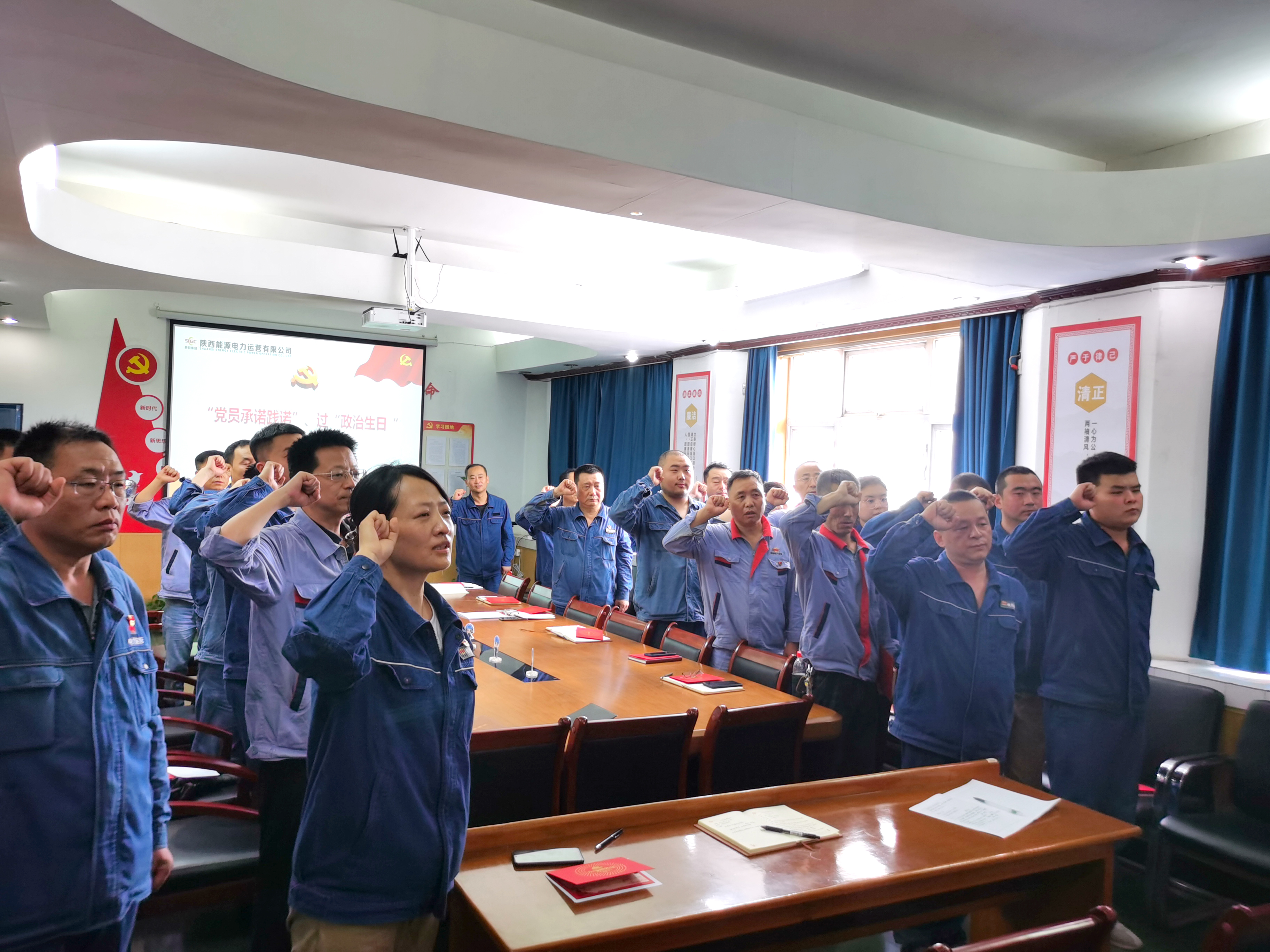 7月12日,渭河項目部黨支部召開黨員大會,并開展黨員集體過“政治生日”、承諾踐諾主題黨日活動。全體黨員、積極分子參加會議。