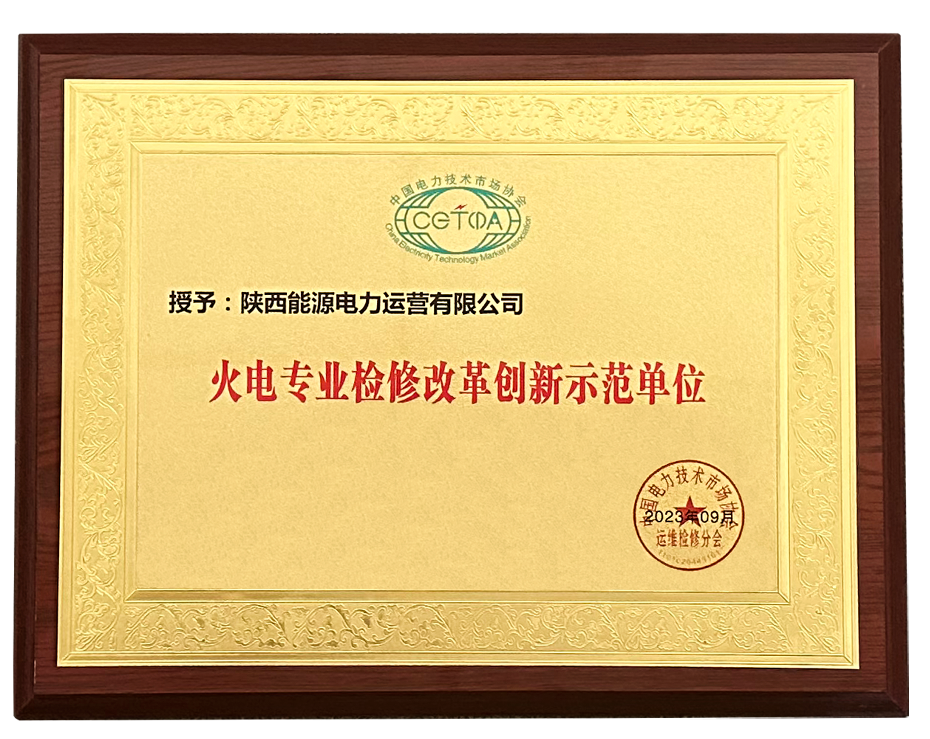 日前,公司獲得中國(guó)電力市場(chǎng)協(xié)會(huì)運(yùn)維檢修分會(huì)頒發(fā)的“火電專業(yè)檢修改革創(chuàng)新示范單位”榮譽(yù)稱號(hào)。