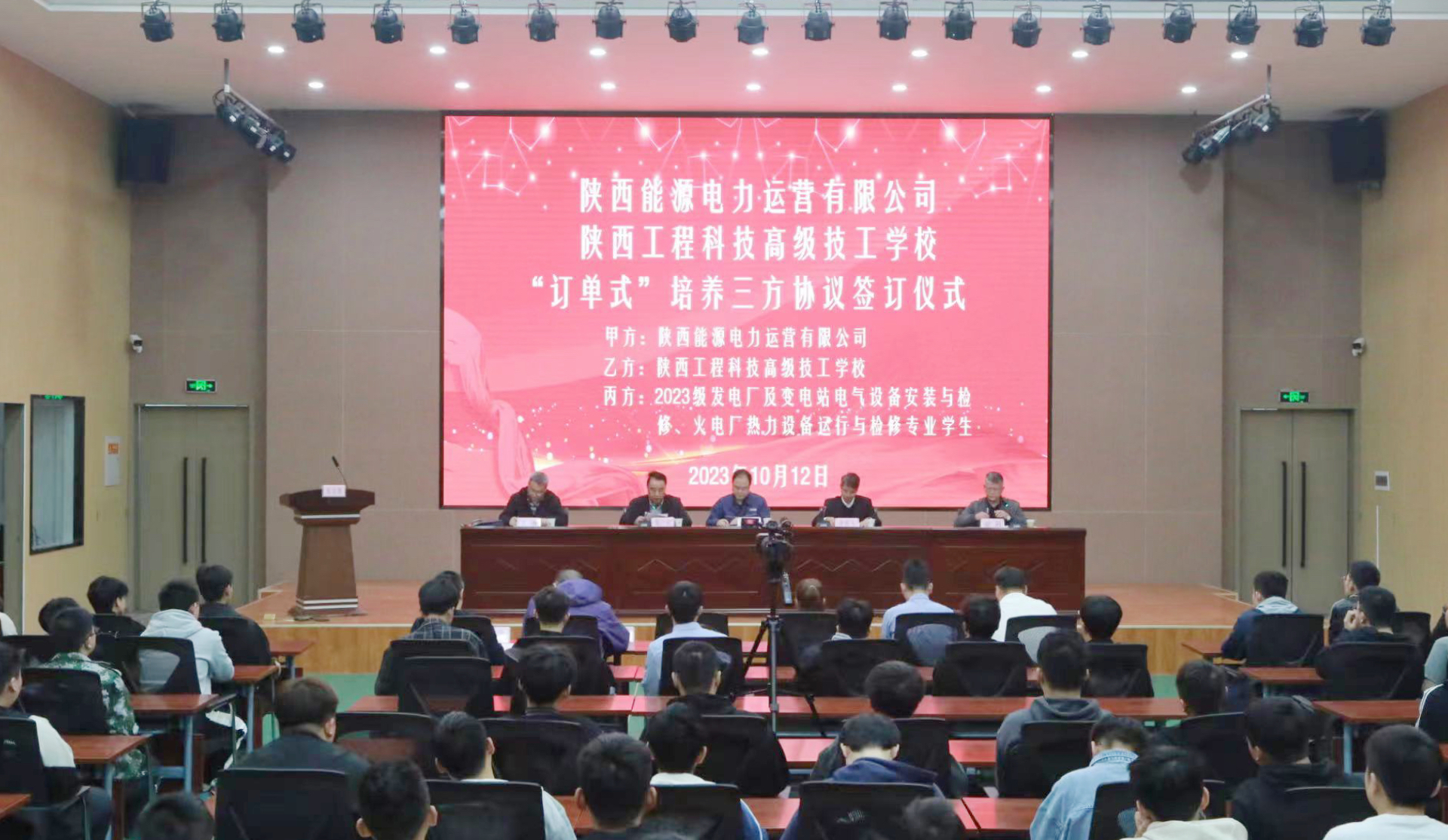 10月12日,公司與陜西工程高級技工學(xué)校舉辦電力運(yùn)營《“訂單式培養(yǎng)”三方協(xié)議》簽字儀式。公司黨委書記、董事長毛冬紅,陜西工程高級技工學(xué)校黨委負(fù)責(zé)人、校長李若飛及教職工代表、學(xué)生共計120余人參加,儀式由陜西工程高級技工學(xué)校副校長趙利主持。