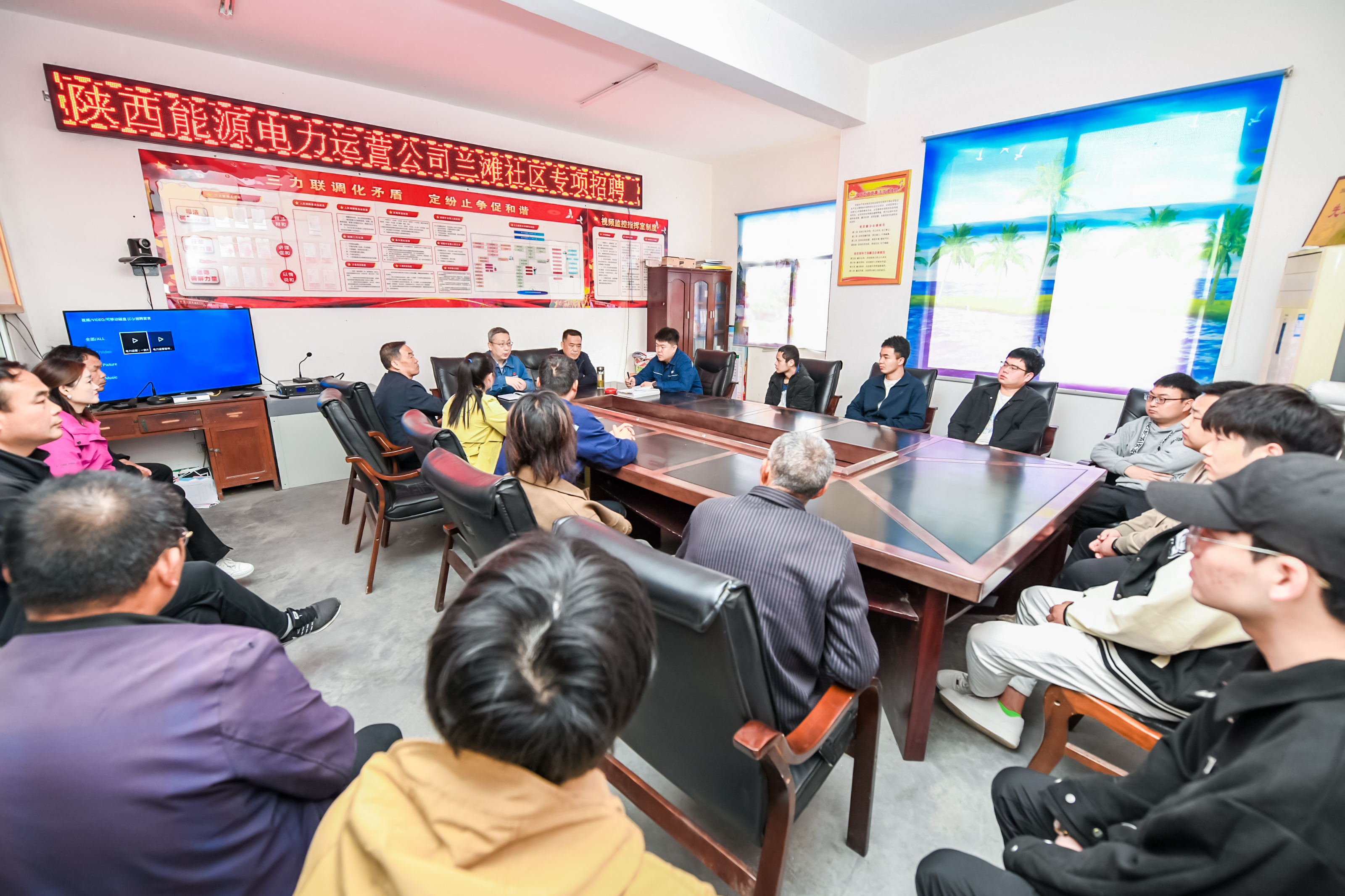 4月9日一大早, 蘭灘社區(qū)黨群服務(wù)中心會議室就開始熱鬧起來,招聘會現(xiàn)場坐滿了前來應(yīng)聘的當(dāng)?shù)卮迕?。“從來沒見過有企業(yè)“上門”來招聘,而且還是國企單位,咱這條件也不知道能不能應(yīng)聘上……”來參加招聘會的村民們小聲議論著。