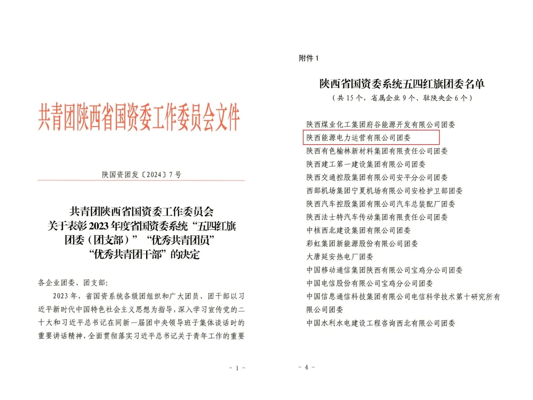 近日,公司團(tuán)委榮獲2023年度“陜西省國(guó)資委系統(tǒng)五四紅旗團(tuán)委”稱號(hào),是本次集團(tuán)系統(tǒng)唯一獲此殊榮的單位。