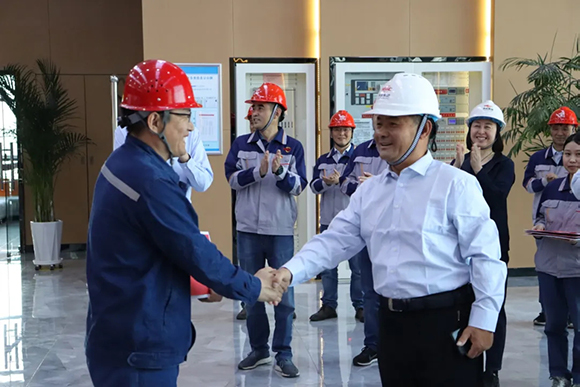 連主席對(duì)項(xiàng)目部廣大職工扎根戈壁、無(wú)私奉獻(xiàn),助力機(jī)組穩(wěn)定高效運(yùn)行,為集團(tuán)電力板塊高質(zhì)量發(fā)展所付出的努力給予高度評(píng)價(jià),鼓勵(lì)全體職工擔(dān)當(dāng)作為,保安全、穩(wěn)生產(chǎn)、提服務(wù),為機(jī)組“迎峰度夏”保駕護(hù)航。連主席一行為職工送上防暑降溫慰問(wèn)品,叮囑大家近期作業(yè)時(shí)要將防暑工作做到位,合理安排作息時(shí)間,嚴(yán)格做好防護(hù)措施,確保高溫季節(jié)安全生產(chǎn)工作有序開(kāi)展。