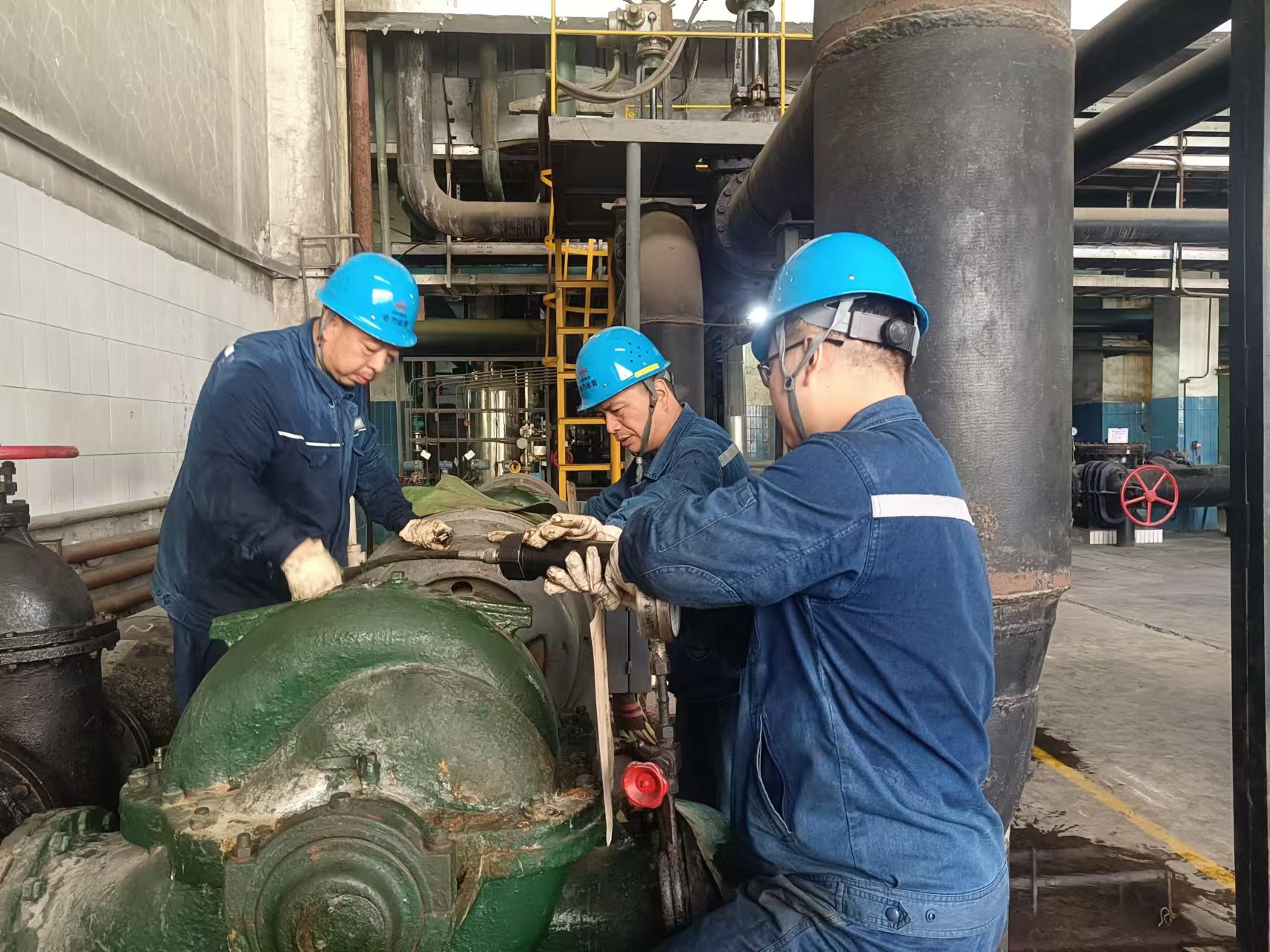 “大家都加把勁,這臺(tái)設(shè)備可關(guān)系到整個(gè)機(jī)組的穩(wěn)定運(yùn)行,必須盡快維修好!”主機(jī)班解江波說完便拿起專用工具熟練地拆卸零部件。甲凝結(jié)泵消缺作業(yè)現(xiàn)場(chǎng),溫度高達(dá)40度,檢修人員氣定神閑地一遍遍盤動(dòng)轉(zhuǎn)子,拿出“繡花”功夫,對(duì)凝結(jié)泵推力瓦塊逐個(gè)進(jìn)行微調(diào),來回近八個(gè)小時(shí),工作服濕了干、干了濕,大家笑稱是蒸“桑拿浴”,但卻始終沒有停歇,一心只想早點(diǎn)讓設(shè)備運(yùn)轉(zhuǎn)起來,直到推力瓦塊測(cè)點(diǎn)溫度正常,設(shè)備運(yùn)行平穩(wěn),工作人員懸著的心才終于放下。