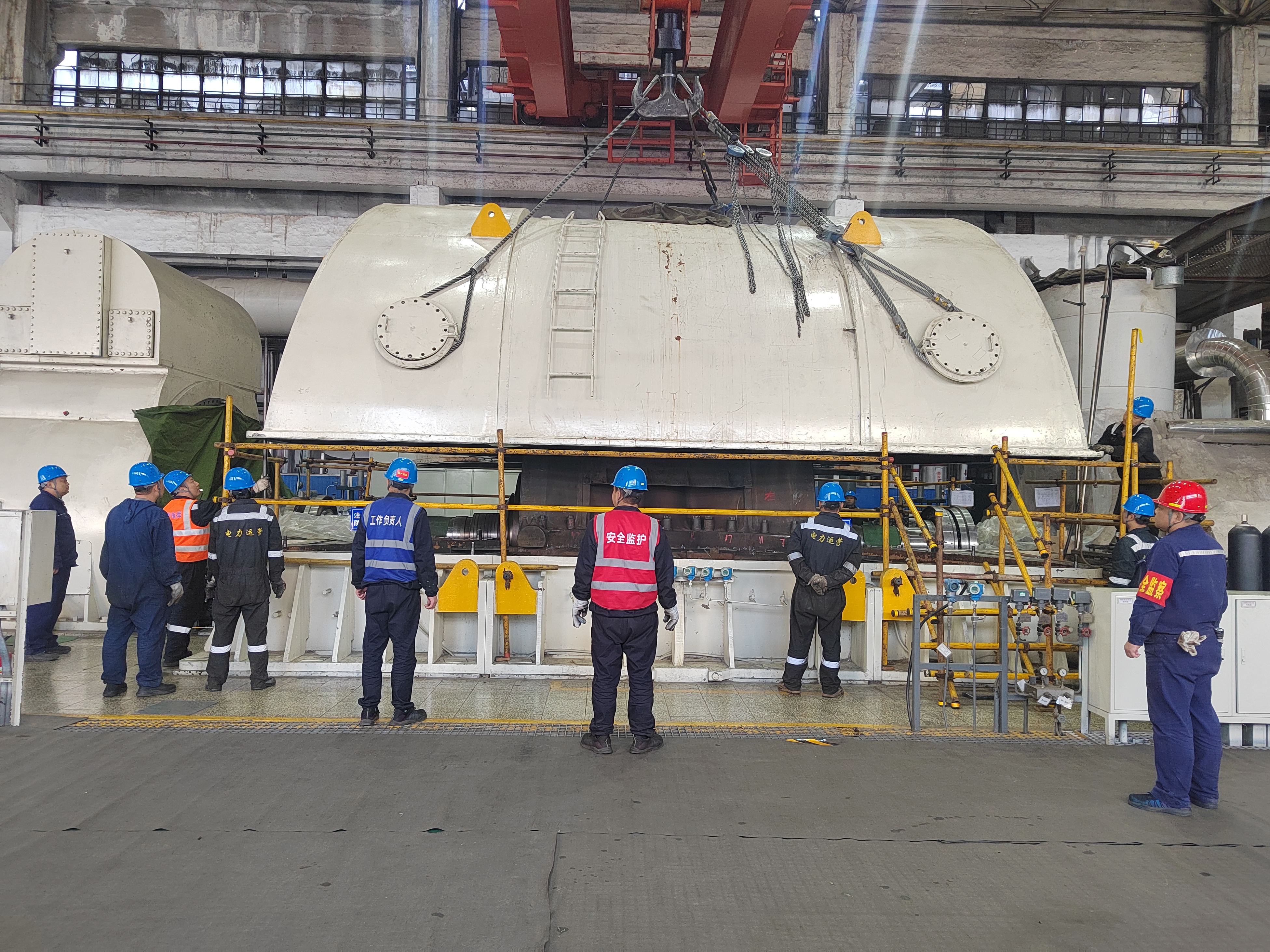 面對緊迫的工期要求及雙機(jī)檢修交叉作業(yè)的特殊環(huán)境,項目部在落實安全責(zé)任制開展常規(guī)安全管理的同時,專門成立以項目負(fù)責(zé)人為組長的專項安全檢查組,將現(xiàn)場動火、高空、有限空間等高危作業(yè)作為監(jiān)控重點,對汽輪機(jī)轉(zhuǎn)子更換、#5爐乙送風(fēng)機(jī)變頻器更換、#6爐吸風(fēng)機(jī)解體大修等作業(yè)進(jìn)行現(xiàn)場巡回檢查,實現(xiàn)安全督導(dǎo)無死角、全覆蓋。