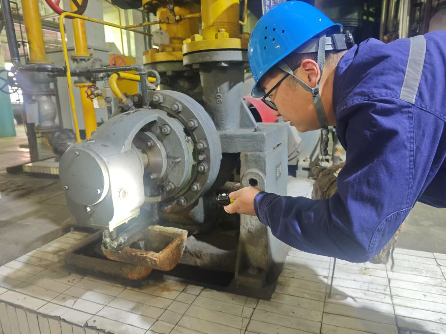 “羅劍布置場地、準(zhǔn)備工器具;晏源負(fù)責(zé)‘兩交底’?!闭矝苡垃F(xiàn)場布置任務(wù)。工作票辦理、泵體拆卸、軸承更換……一場搶修大戰(zhàn)隨即展開。除夕的渭北大地朔風(fēng)凜冽、寒氣陣陣,但大家一點(diǎn)都沒在意,干得熱火朝天。連接對輪、試轉(zhuǎn)運(yùn)行……設(shè)備恢復(fù)正常時(shí),時(shí)間已是深夜。