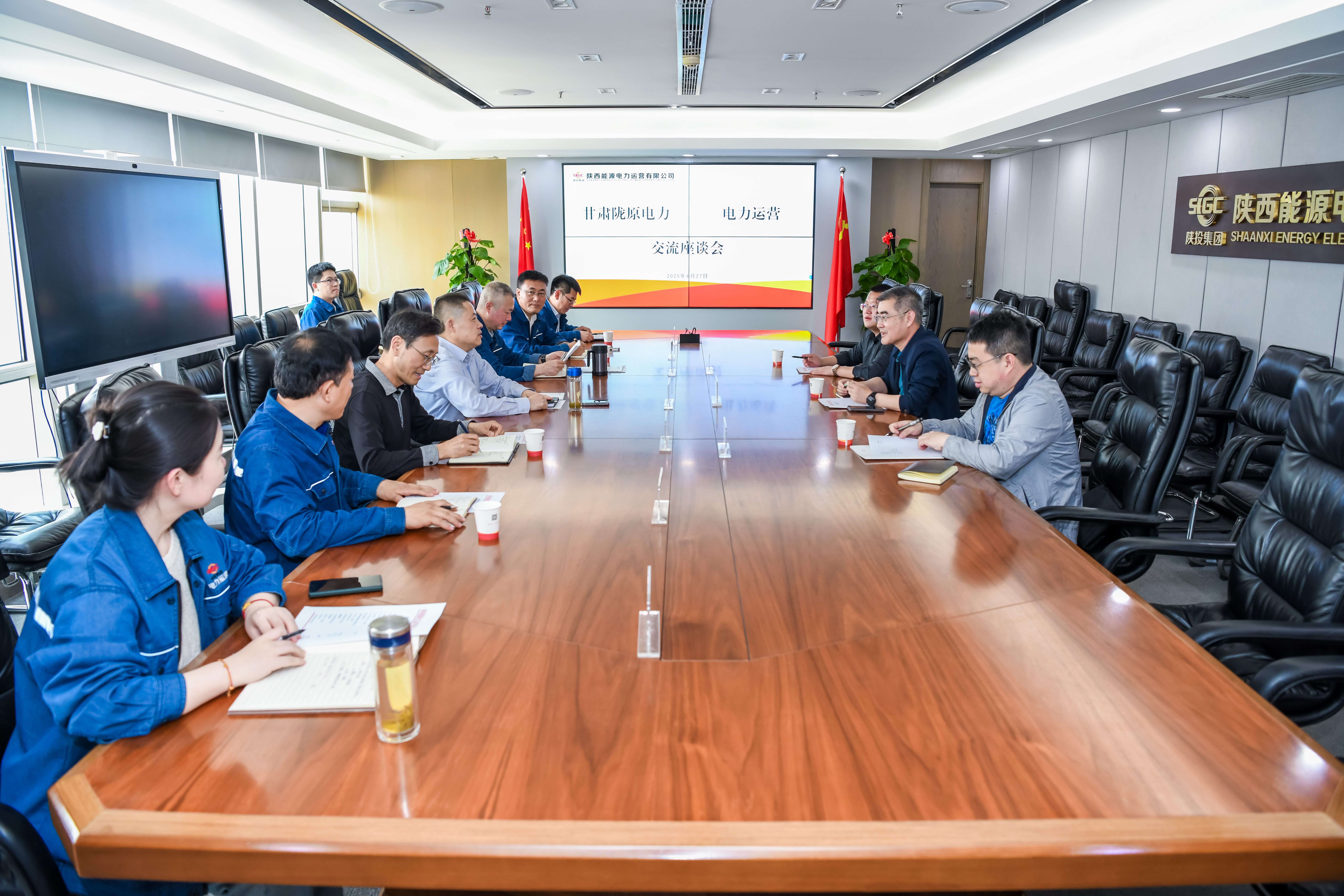 4月27日,甘肅電投隴原電力黨委書(shū)記、董事長(zhǎng)陳開(kāi)鋒一行到公司座談交流。陜西能源電力管理部孟滿(mǎn)團(tuán),公司領(lǐng)導(dǎo)班子成員參加座談。