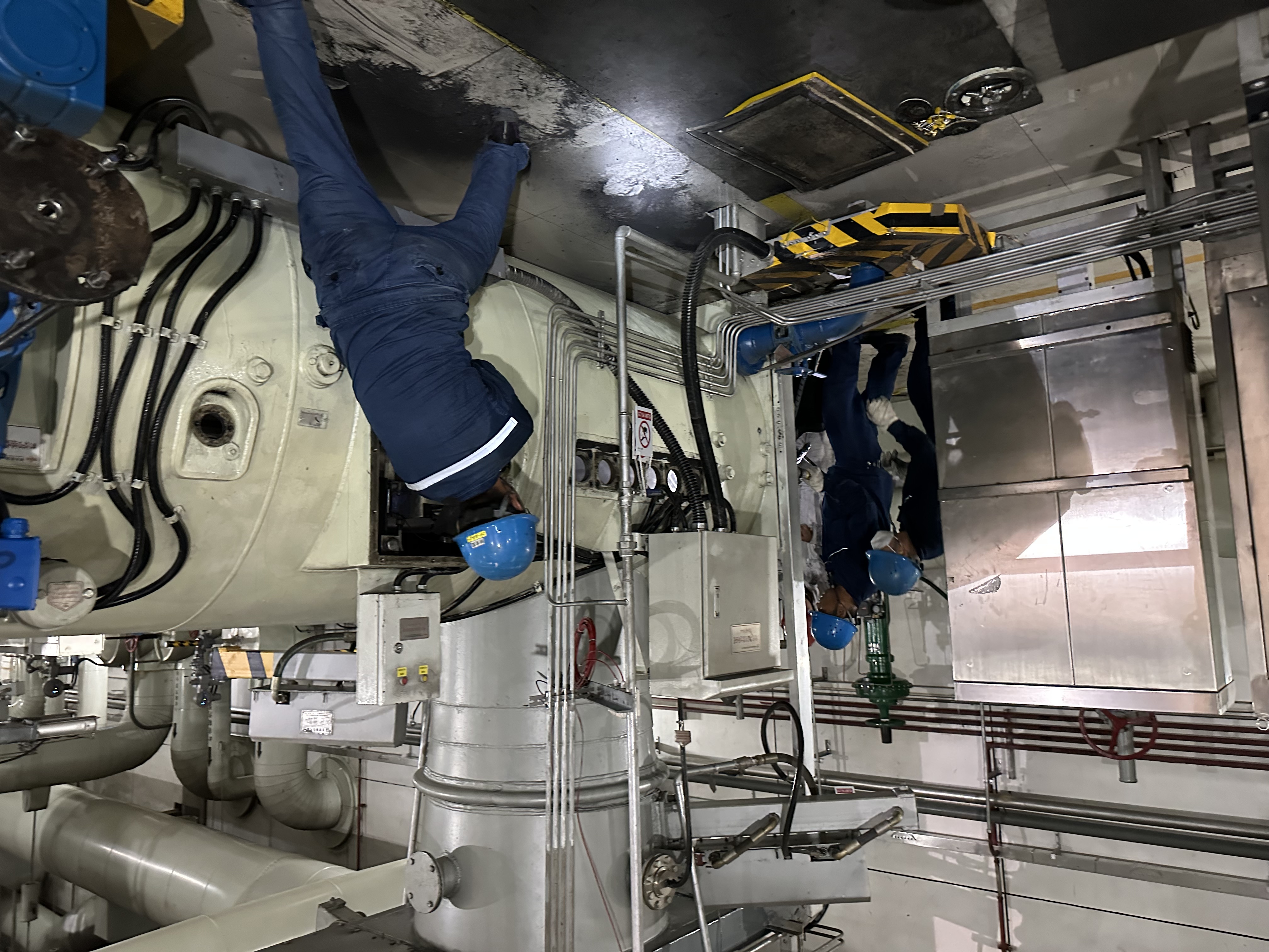 項目部果斷啟動應(yīng)急響應(yīng),科學(xué)研判、精準(zhǔn)布局,制定雙線作戰(zhàn)搶修方案。一路搶修D(zhuǎn)給煤機(jī),通過優(yōu)化工序、協(xié)同作戰(zhàn),僅用4個多小時完成原本需6-7小時的皮帶更換與調(diào)試,迅速恢復(fù)制粉系統(tǒng)運(yùn)行,為負(fù)荷穩(wěn)定贏得窗口。另一路迎戰(zhàn)更復(fù)雜的C給煤機(jī)缺陷,創(chuàng)新采用“插管法”臨時封堵原煤倉,于當(dāng)晚22:30實(shí)現(xiàn)設(shè)備臨時投運(yùn)、開始燃煤,為徹底消缺創(chuàng)造條件。