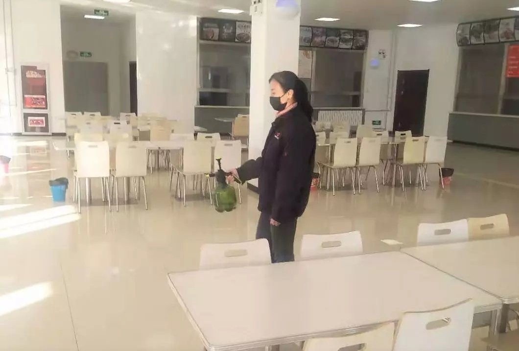 2月10日8:45,我正在給員工餐廳消毒。——趙石畔項目部綜合班程春麗