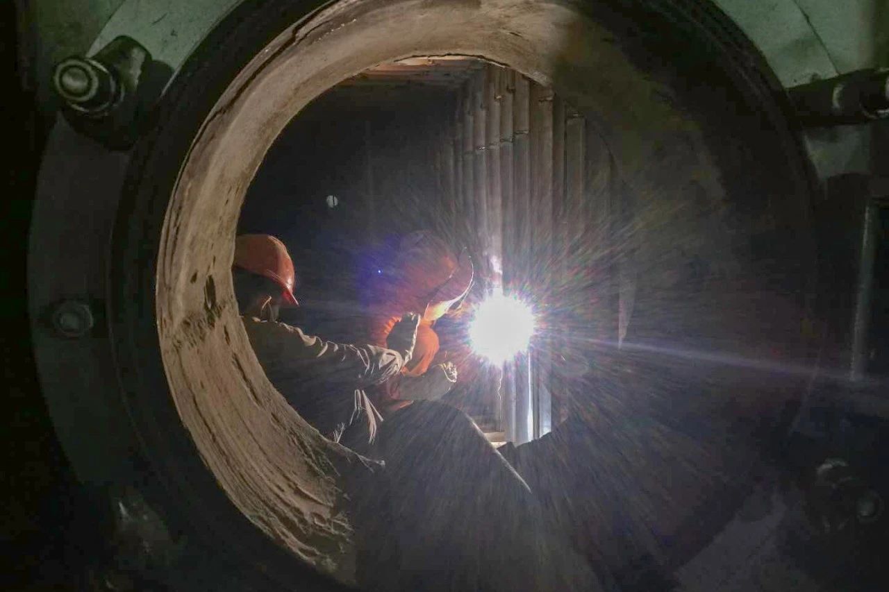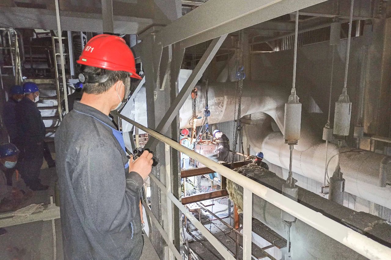 3月5日,趙石畔項(xiàng)目部在#1爐爐膛內(nèi)更換防磨瓦