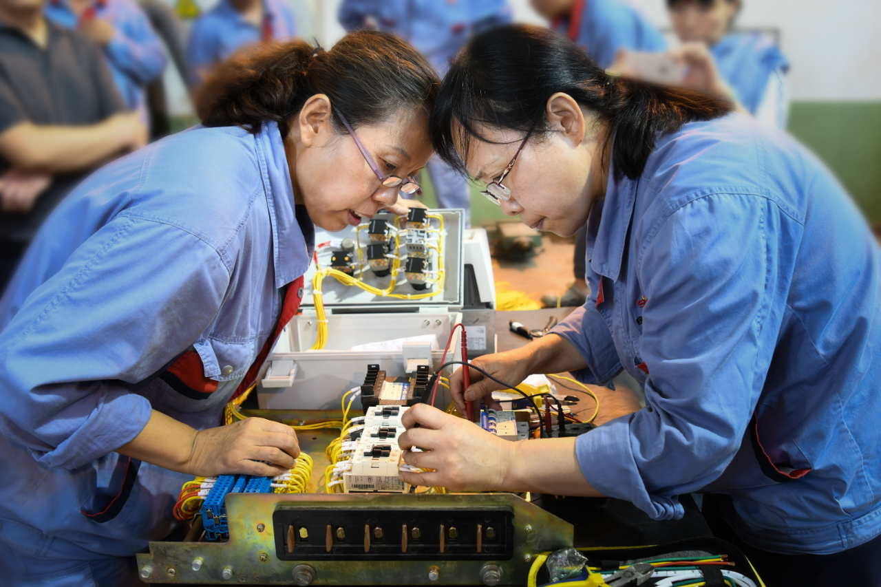 在電氣二次配線賽場上,選手們參照圖紙剪線、剝線、接線,量線,每一個(gè)眼神都專業(yè)專注,每一個(gè)環(huán)節(jié)都力求精益求精。
