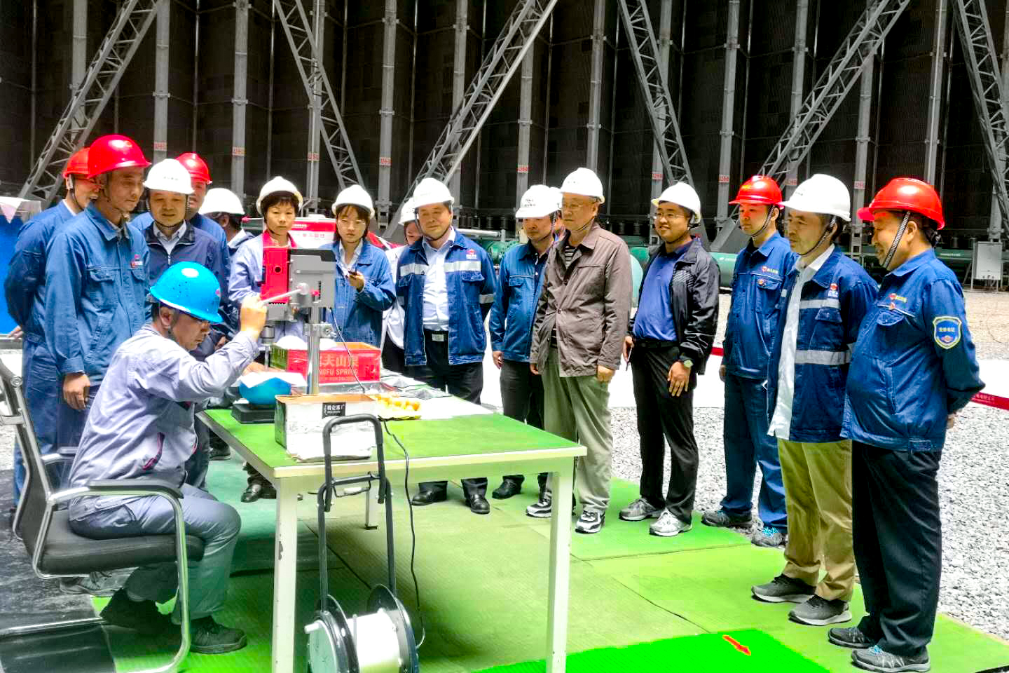 在間冷塔內(nèi),公司副總經(jīng)理雷喜鳴向李智學(xué)介紹了公司精細化展示籌備情況。調(diào)研組實地觀摩了氣球上A4紙打孔等職工絕活,項目部職工惠海濤在現(xiàn)場展示過程中,沉著冷靜一氣呵成,完美的表現(xiàn)贏得了調(diào)研組人員的熱烈掌聲。