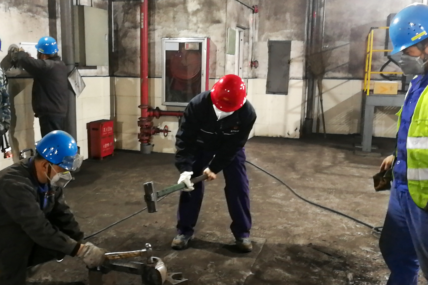 方案一經(jīng)確定,搶修戰(zhàn)役隨即打響。全體參戰(zhàn)人員多路分兵,稱重配錘、打磨軸銷、拆除損壞錘臂錘頭,全力投入搶修工作。配對組在配重過程中,為了確保一次配重成功,補焊人員精益求精,將誤差控制在0.01kg內(nèi);拆卸組在環(huán)軸與錘臂夾死的處理中,絲毫沒有因為拆卸困難而有一絲松懈,大家集思廣益,商討制作各種工器具、反復(fù)嘗試各種拆卸方法。最終,在連續(xù)奮戰(zhàn)48小時后,搶修任務(wù)順利完成,試轉(zhuǎn)一次成功??粗皾M血復(fù)活”的設(shè)備重新投入使用,全體參戰(zhàn)人員的臉上露出了會心的微笑。